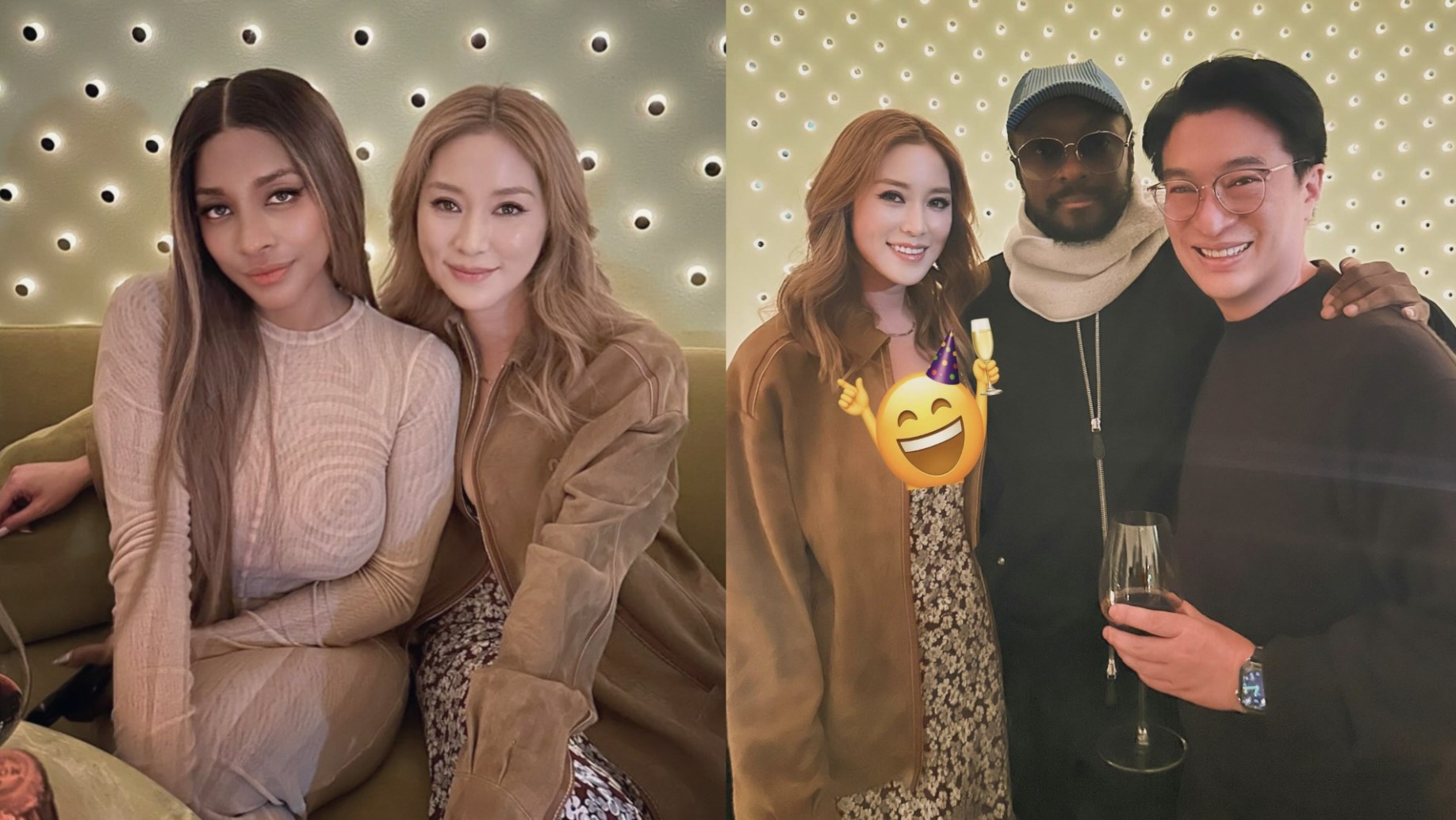 徐子淇與老公李家誠拍拖出席活動。(小紅書) 徐子淇日前在Instagram上載合照,她與李家誠和Black Eyed Peas成員will.i.am合照,又與索女歌手J. Rey Soul搭膊頭影相,氣質不輸現役明星。李家誠與徐子淇近年常出雙入對,曬出生活美照,李家誠願陪老婆追星,非常愛太太。徐子淇罕有用Emoji「遮心口」影相,保持貴婦矜持氣質。