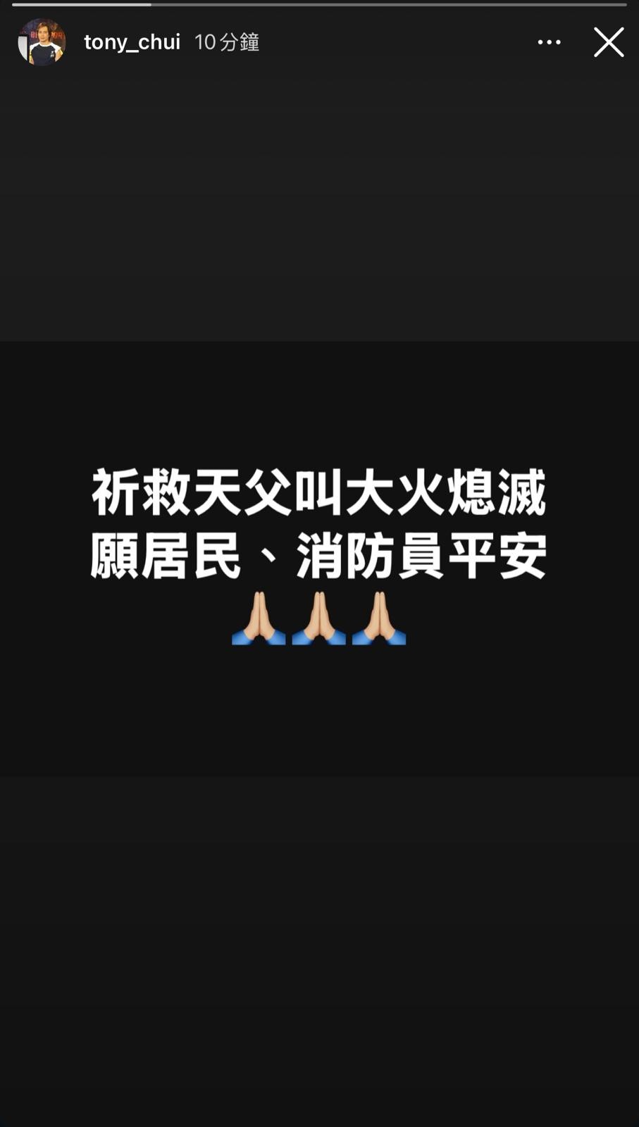 身為「大埔人」的吳保錡亦有在社交平台發文關心火勢情況。(IG圖片)