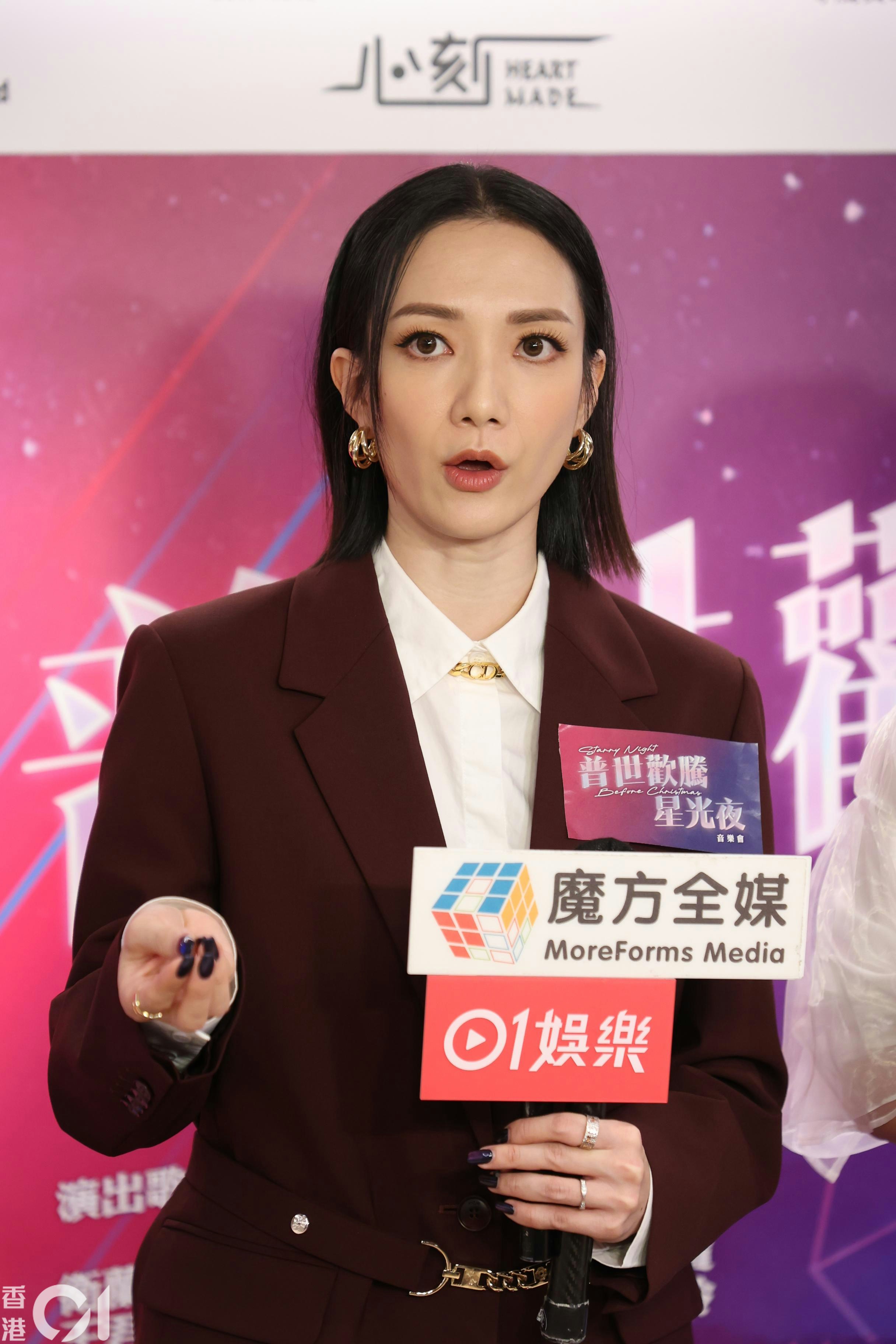 王君馨今日現身觀塘出席藝人之家40周年《普世歡騰星光夜》音樂發佈會。(葉志明攝)