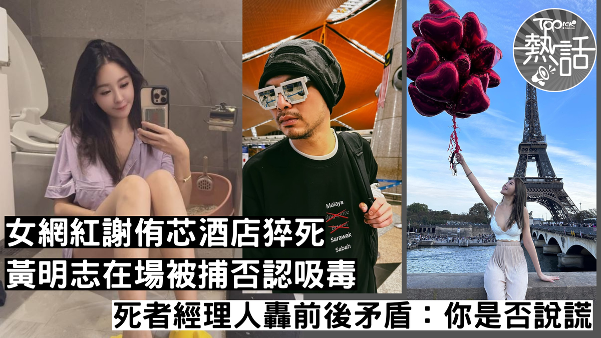 消息指,42歲歌手黃明志當時在現場,警方在他身上搜出9粒疑似毒品藍色藥丸,當場依據《1952年危險毒品法令》的擁毒及濫用毒品罪嫌將他拘捕。黃明志否認控罪,現已獲保釋。此外,他更疑似跟謝侑芯曾發生性行為並移動遺體,讓整起事件更撲朔迷離。
