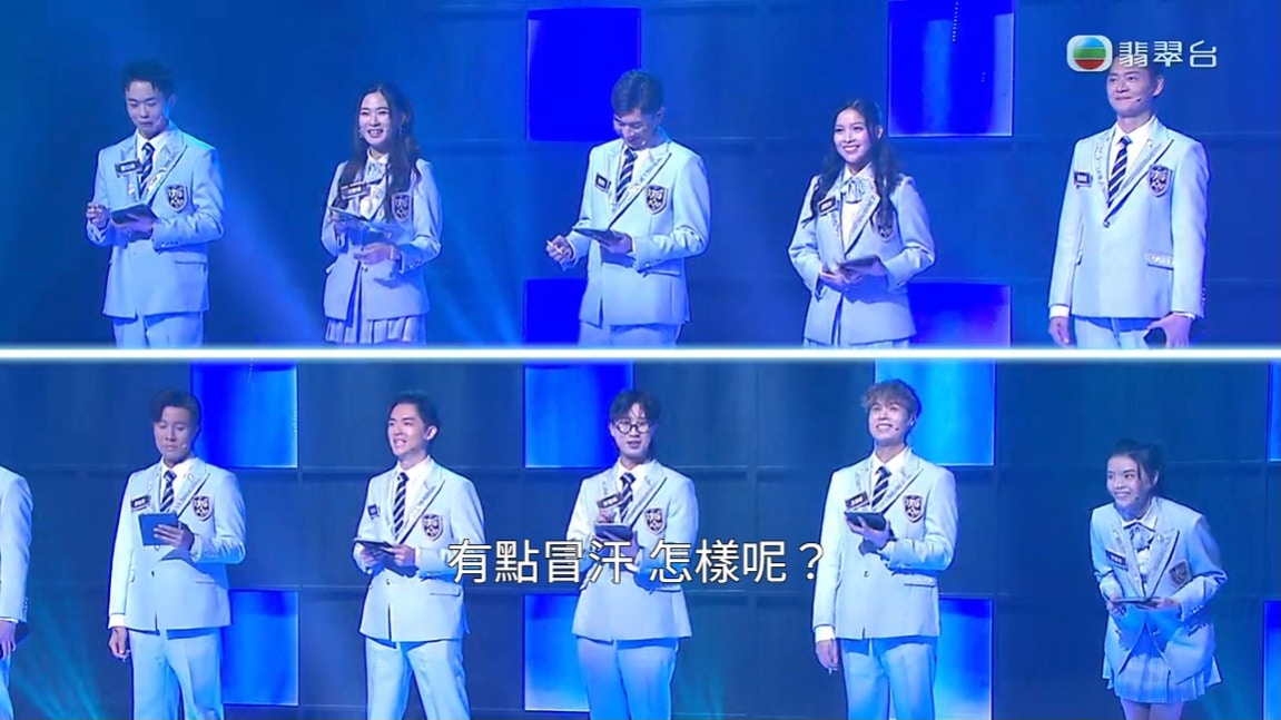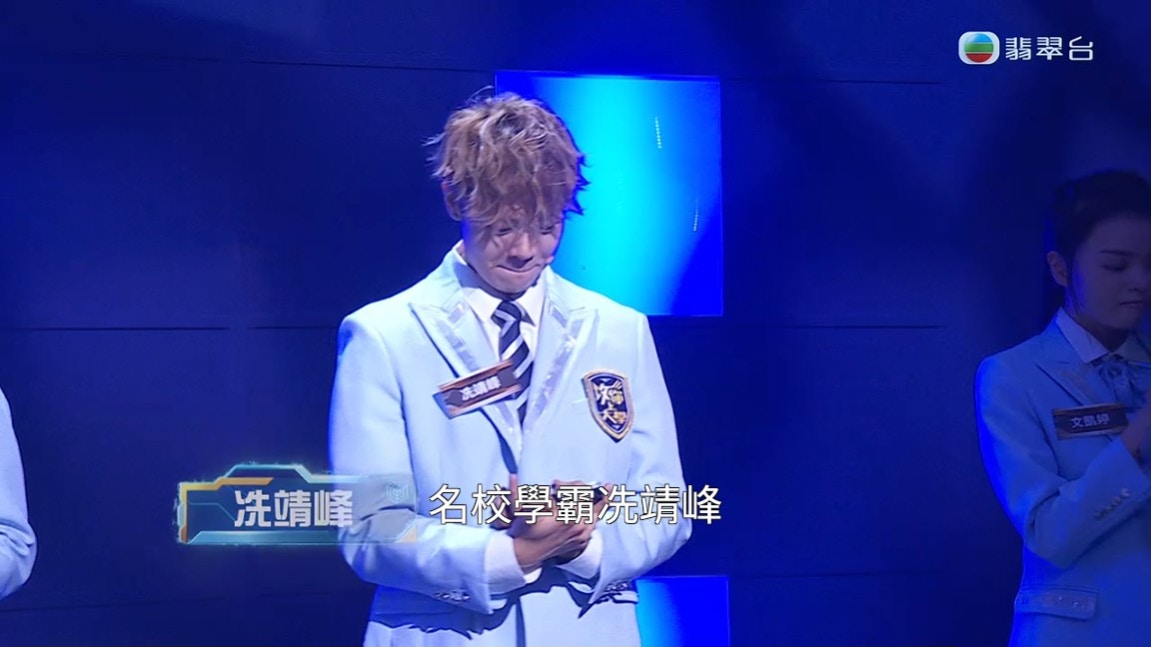 在林盛斌介紹冼靖峰出場時指:「讀書、唱歌、演戲做主持都難佢唔到嘅名校學霸冼靖峰。」但當說到冼靖峰是「名校學霸」時,他心虛地笑了一下,再低下頭來,看來名校「喇沙」出身的他,自覺承受不了這個名銜。