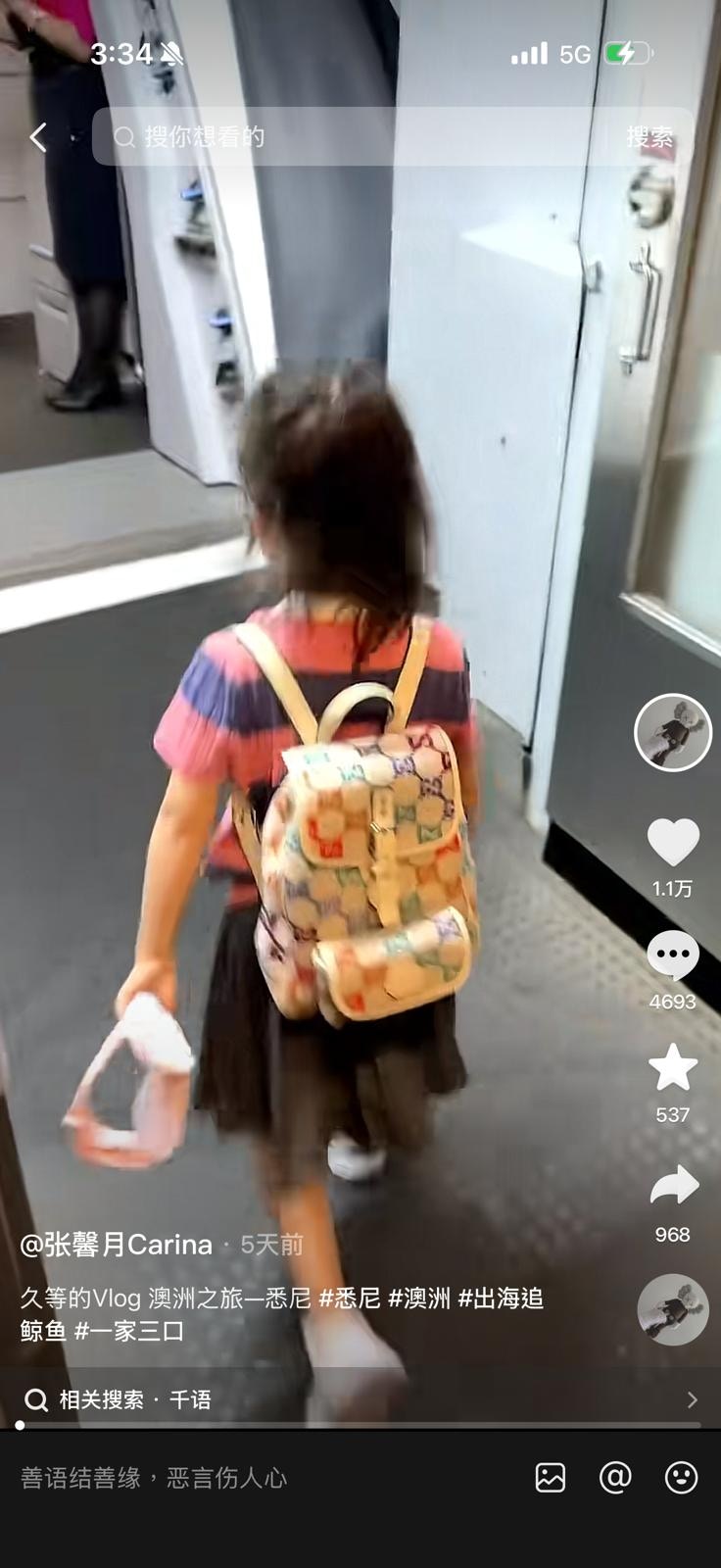 不過,不少網民的焦點,卻落在了愛女Luna的打扮上。片中見Luna甫一出場,就孭著一個小童尺寸的Gucci背包,雖然年紀小小,但已貴氣十足。然而,有眼利的網民發現,Luna在片中更換的兩件外套,似乎都「衣不稱身」,尺寸明顯「太大件」,袖子都過長,需要捲起幾摺。有網民擔心太大件的外套欠保暖成效,提醒張馨月買幾件合身的衣服給女兒。