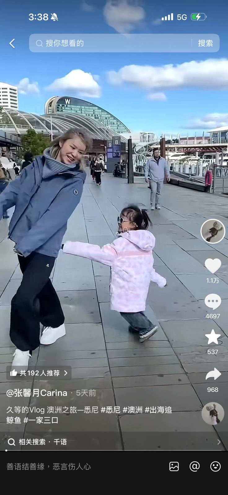 升呢做「闊太」的張馨月,亦專心相夫教女,經常在小紅書、IG等社交平台大曬富貴日常。日前,她就上載了一段一家三口去澳洲悉尼旅行的Vlog,分享幸福點滴。片中見到林峯一家玩得非常盡興,林峯亦盡顯慈父本色,全程孭住大背包兼拖實囡囡,而張馨月就「兩手fing fing」,狀態輕鬆。