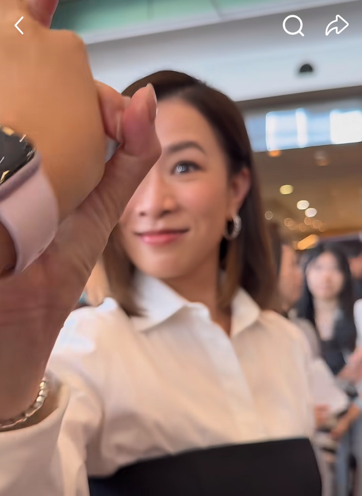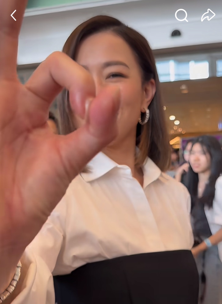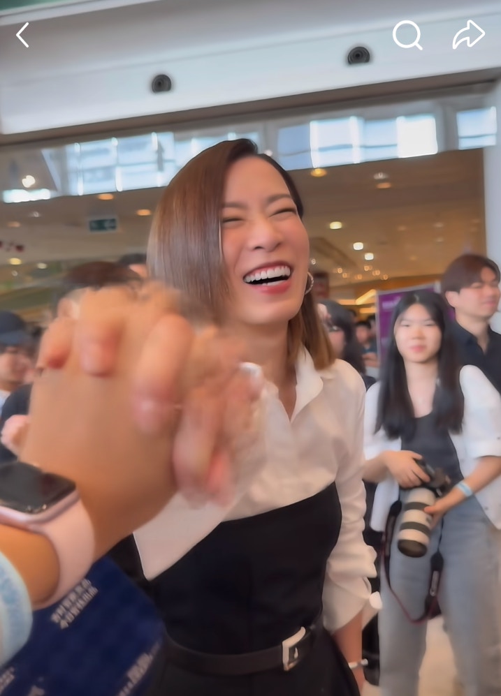 其中一位粉絲手持手機,示意佘詩曼擺出OK手勢,原來是想與佘詩曼「扣上」並十指緊扣!佘詩曼沒有任何反感,反而配合維持幾秒才鬆開手。這段溫馨互動被粉絲拍成短片並在小紅書分享,迅速引起網上熱議。果然,佘詩曼不愧是「新聞女王」,更是一位「寵粉女王」!