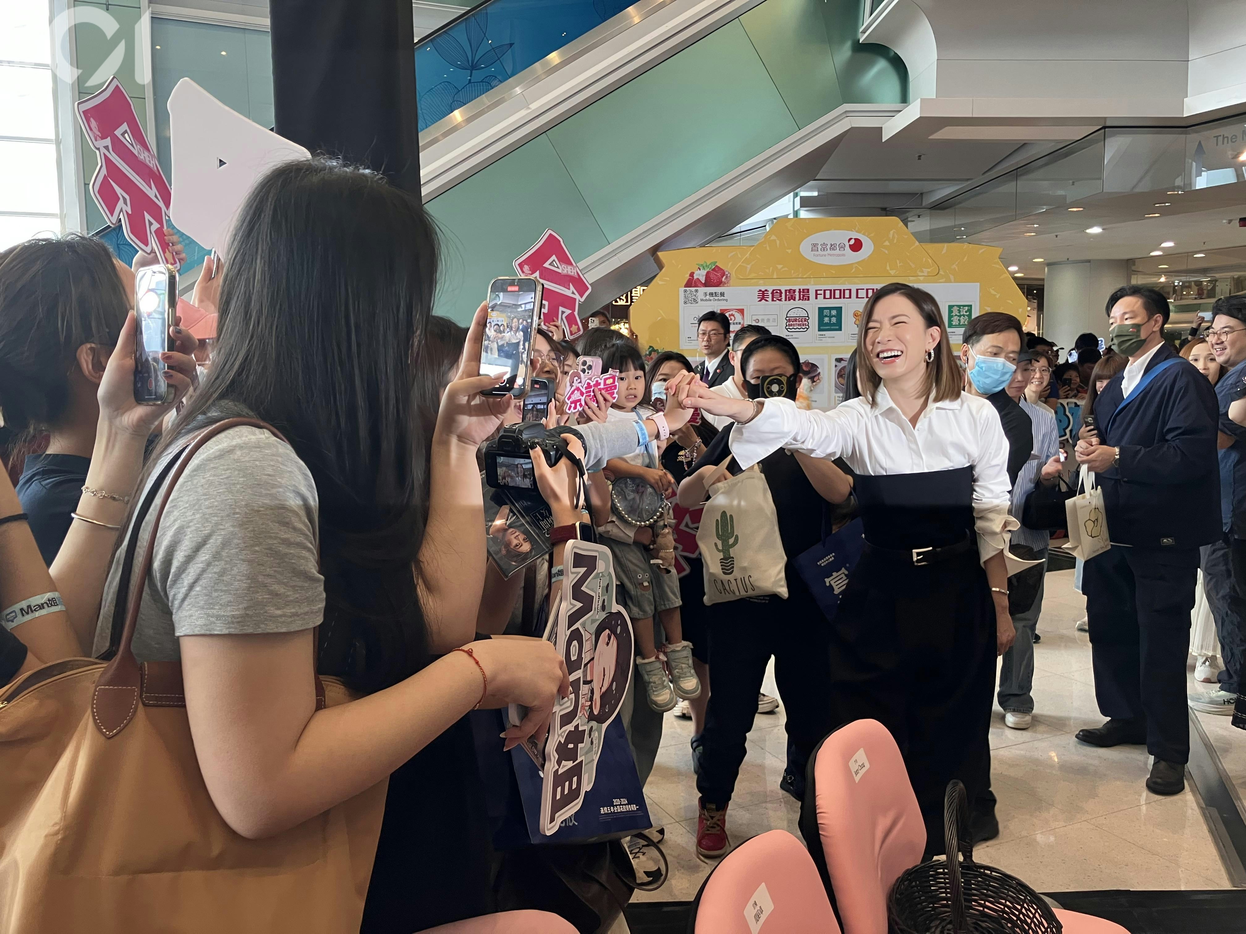 活動結束後,佘詩曼特意走到觀眾席與粉絲打招呼,瞬間引來一陣哄動。粉絲們熱情湧上,要求與佘詩曼合照留念。面對如此熱烈的場面,甚至一度差點失控,佘詩曼卻沒展露絲毫不悅之情,反而臉帶燦爛笑容,與每位粉絲互動。她不僅派發postcard,還主動握手派心,十分有親和力。