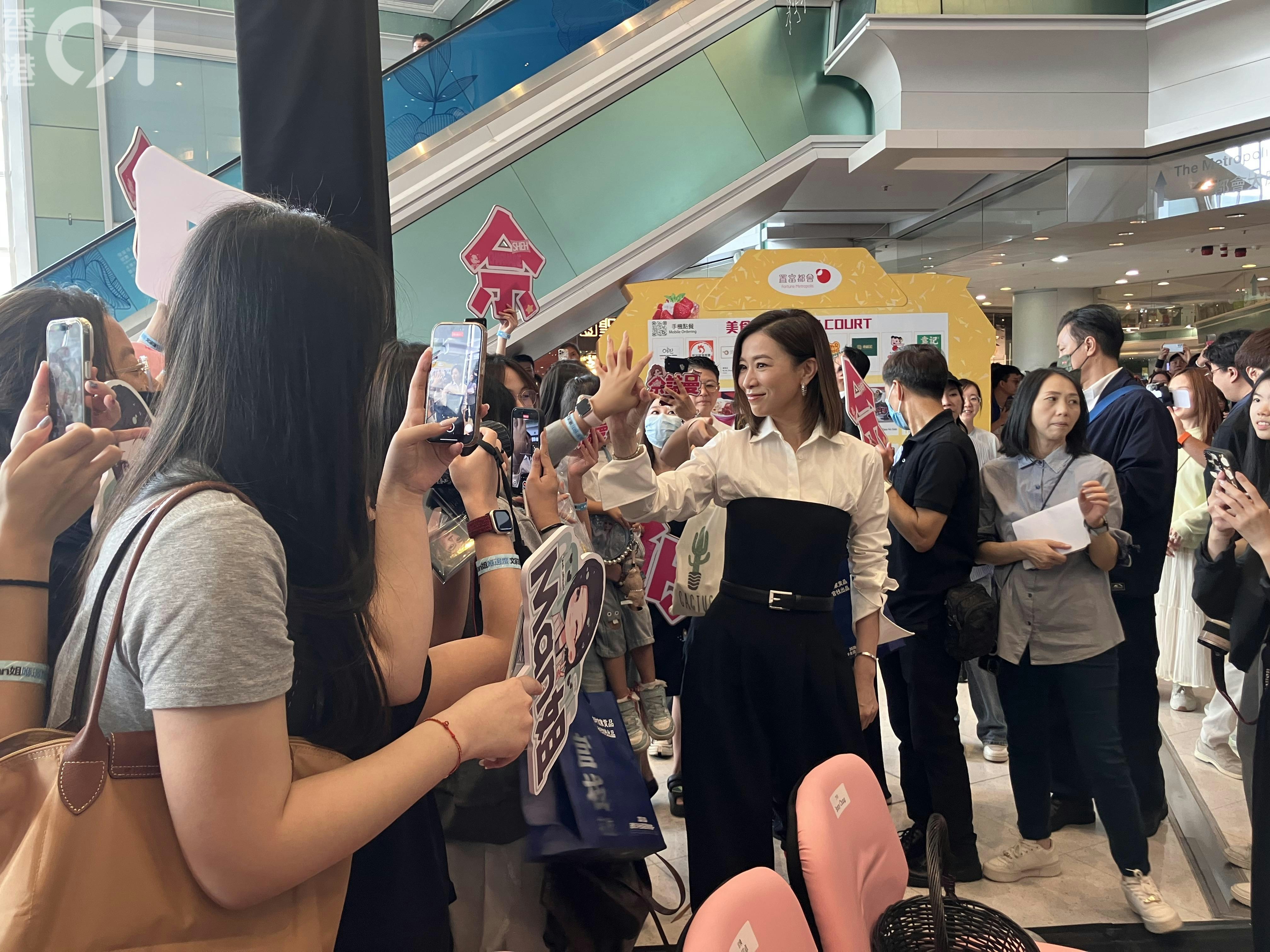 日前(11月9日),佘詩曼聯同劇中多位演員,包括王敏奕、馬國明、陳曉華、譚俊彥、鄧智堅及龔慈恩等,現身紅磡商場為《新聞女王2》展覽揭幕。除了大批市民圍觀外,還有眾多佘詩曼粉絲到場支持,場面十分熱鬧。粉絲們拉起橫額,高呼口號,現場氣氛高漲,迫爆三層樓,成為當日焦點。