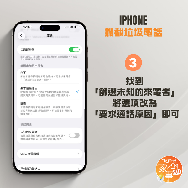 iPhone新功能|iPhone iOS 26自動攔截垃圾電話教學 1設定篩走詐騙/廣告號碼