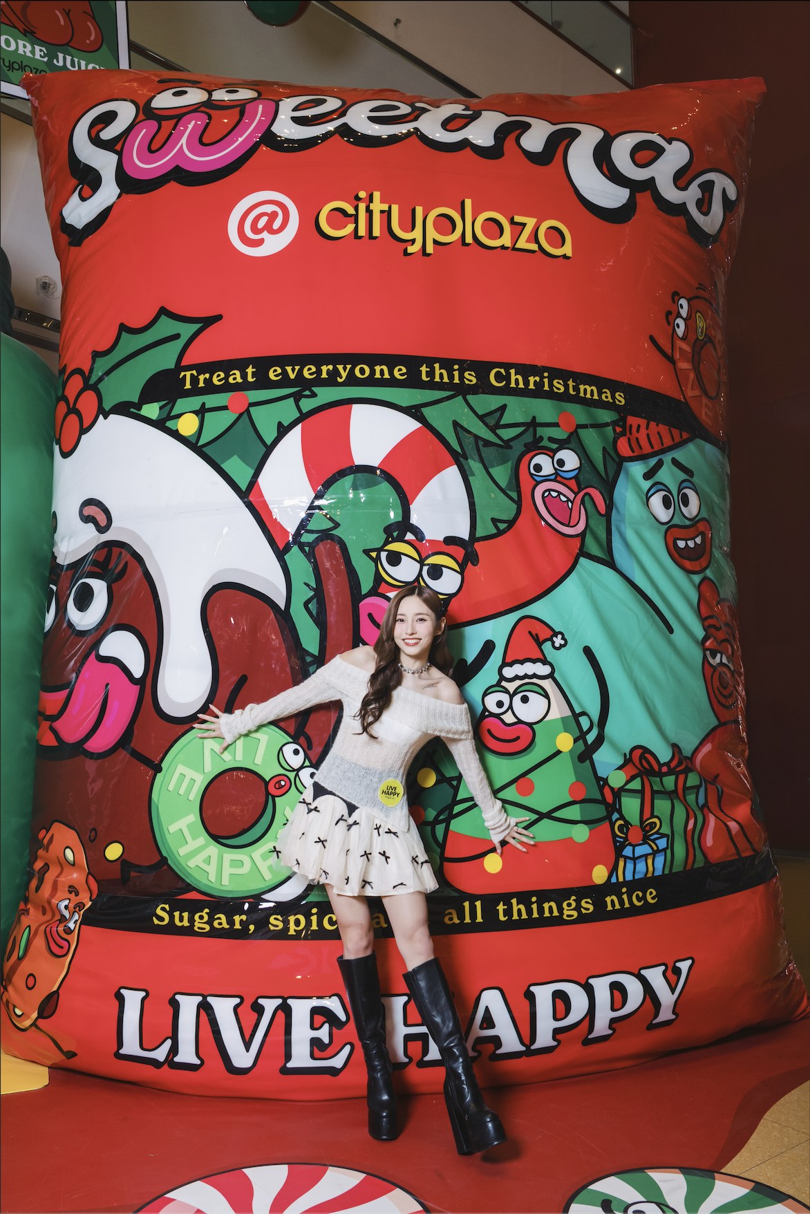 Ivy So興奮地表示:「平時我都好鍾意聖誕節嘅甜蜜氛圍,今次嚟到太古城中心覺得好似進入咗糖果世界咁,平時細細粒嘅糖全部變成巨型可愛版,勁有驚喜呀!場內有好多款,我細細個已經有食過嘅糖,好似蟲蟲糖同熊仔笑笑糖咁,全部我都想揀!不過要揀最可愛嘅一定係表情多多嘅聖誕布甸,一拍個盒就會有唔同Cute爆嘅表情出現。」