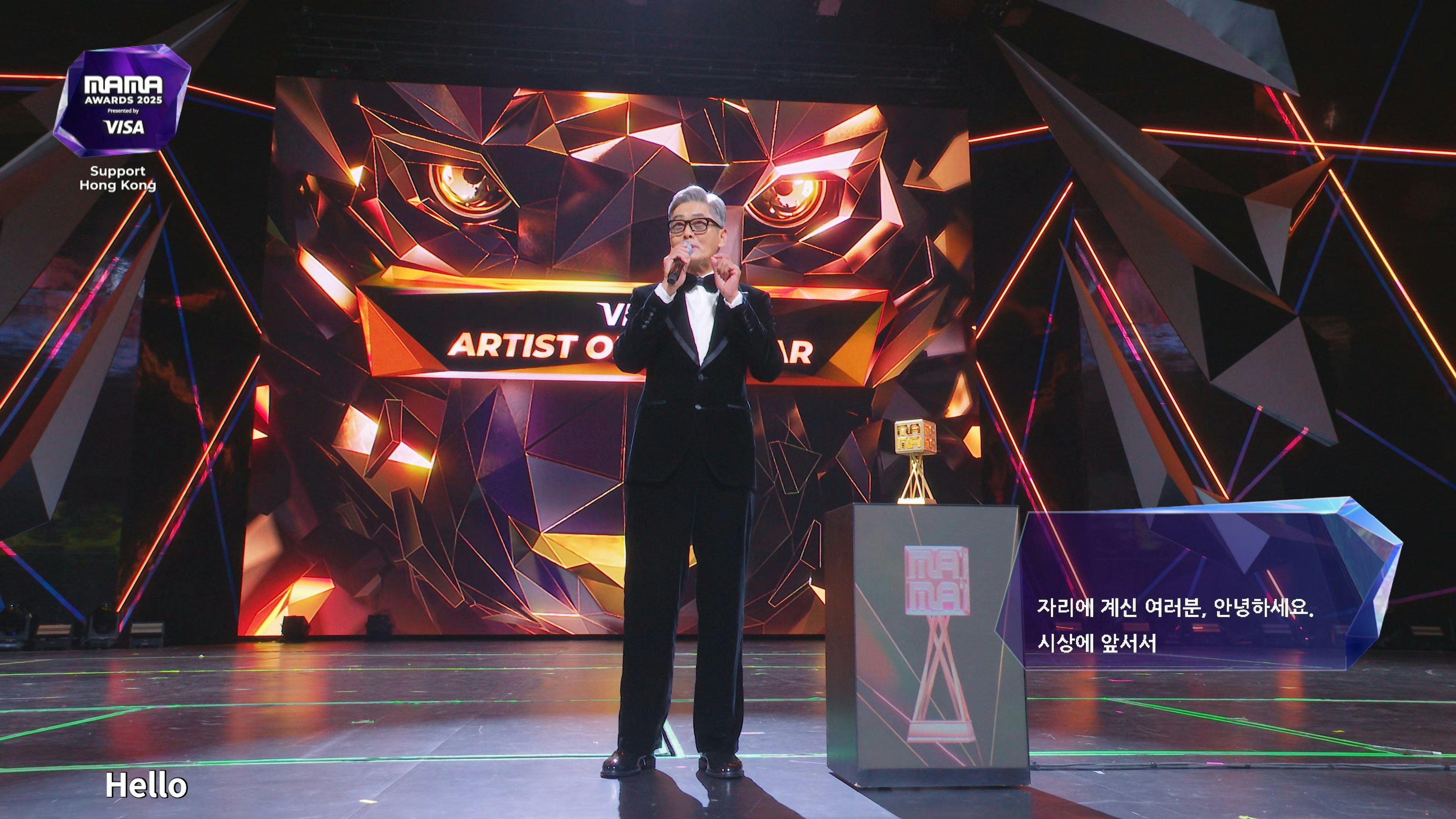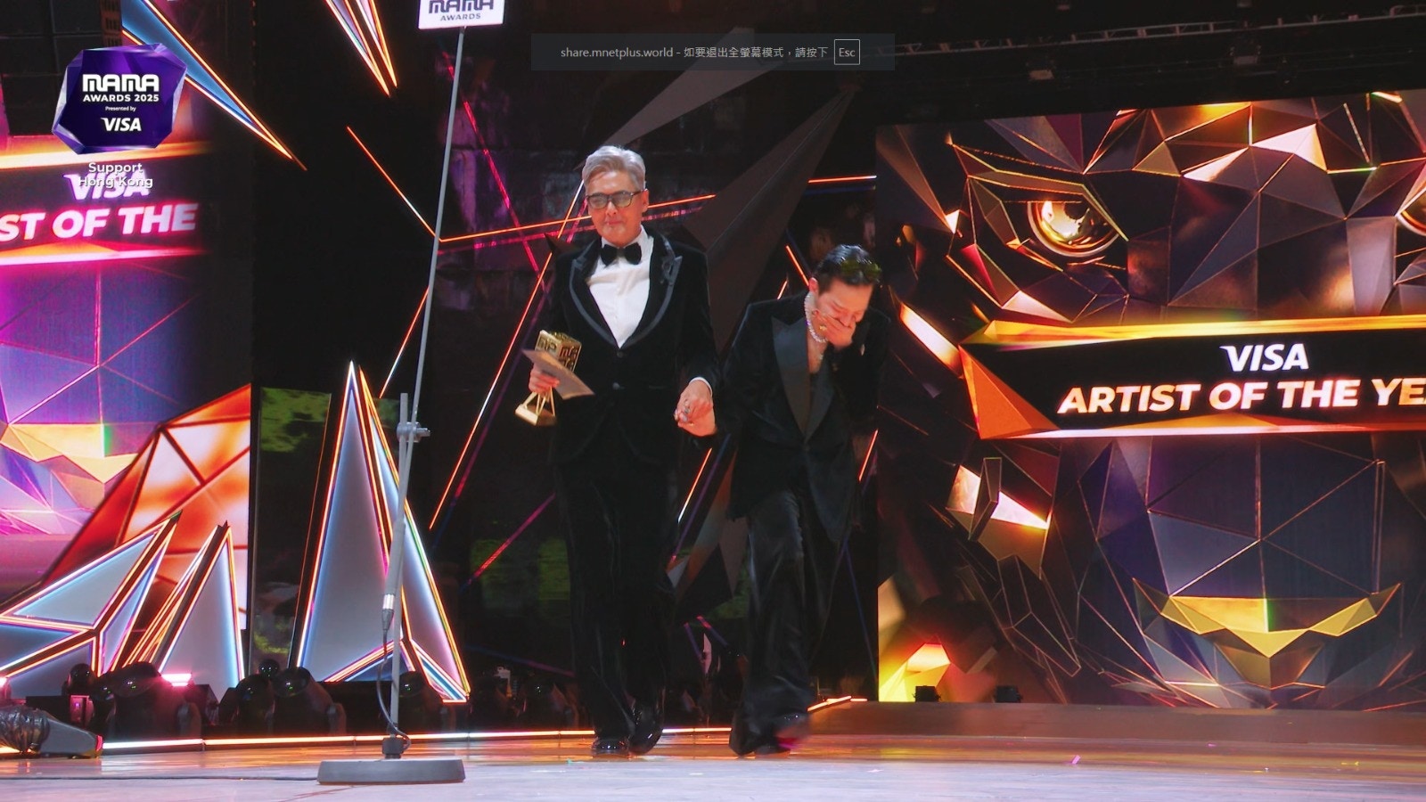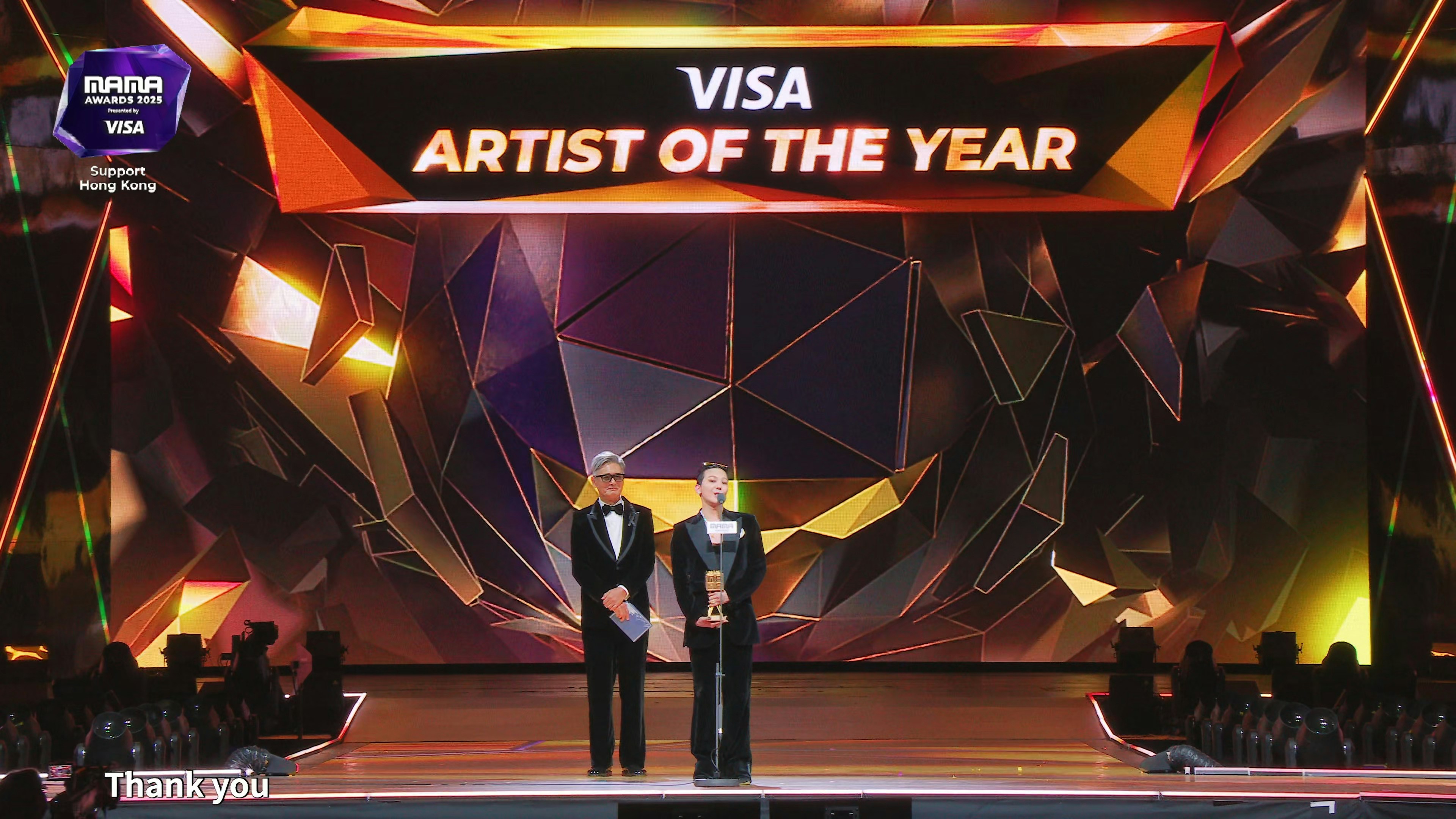 韓國年度音樂盛事《2025 MAMA Awards》(MAMA),今晚(29日)繼續於香港啟德體育園啟德主場館舉行,天王G-DRAGON(GD)壓軸演出,更奪得「ARTIST OF THE YEAR」年度藝人大獎!GD從頒獎嘉賓周潤發手中接過獎項,他在發表得獎感言時亦有向大埔宏福苑五級大火災民致意:「今天既是開心的一天,也是悲傷的一天,各種情緒交錯。在MAMA 30週年能從我一直以來的偶像周潤發前輩手中接過這個獎,感到十分光榮。謝謝大家,我愛你們。」