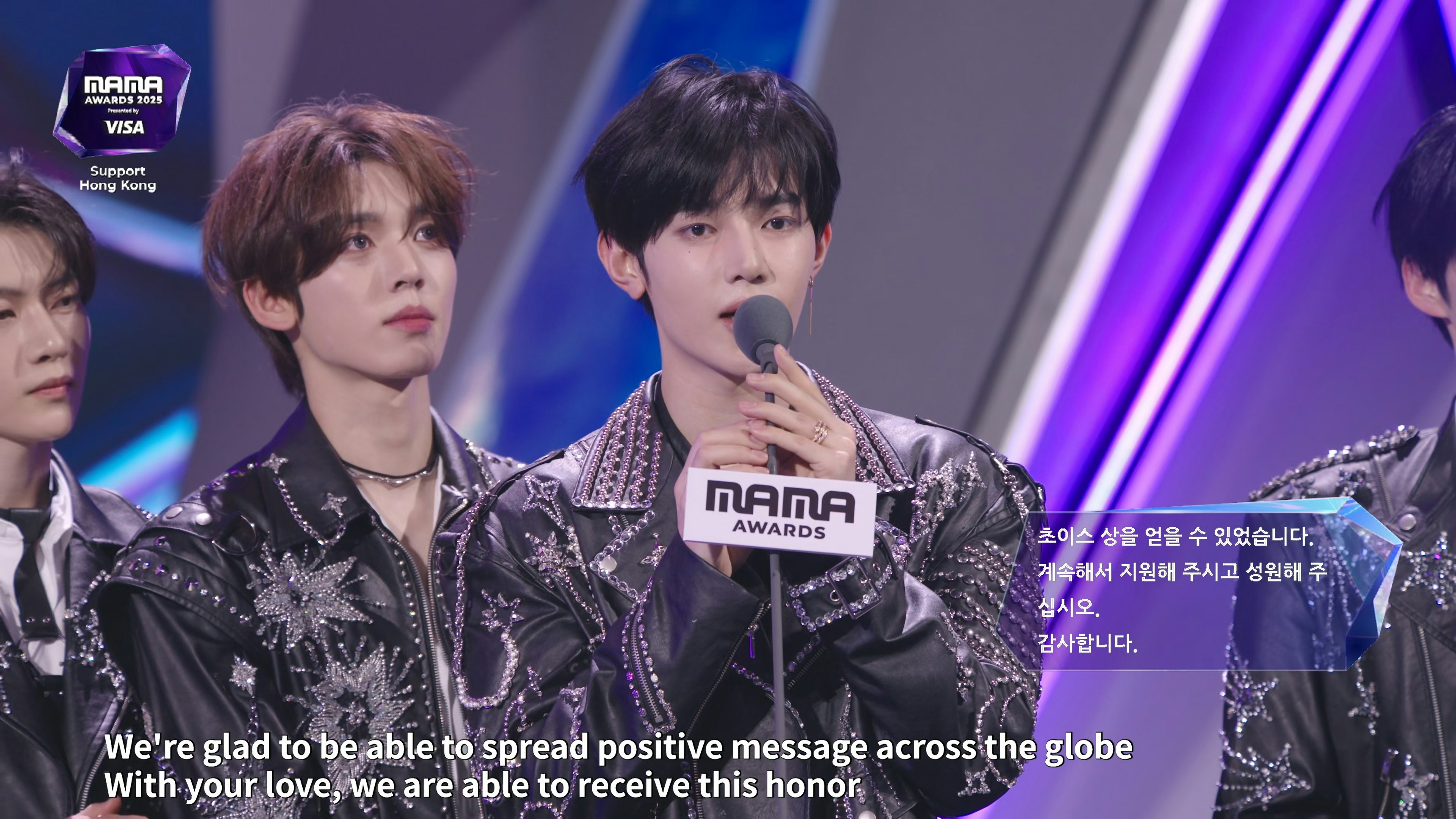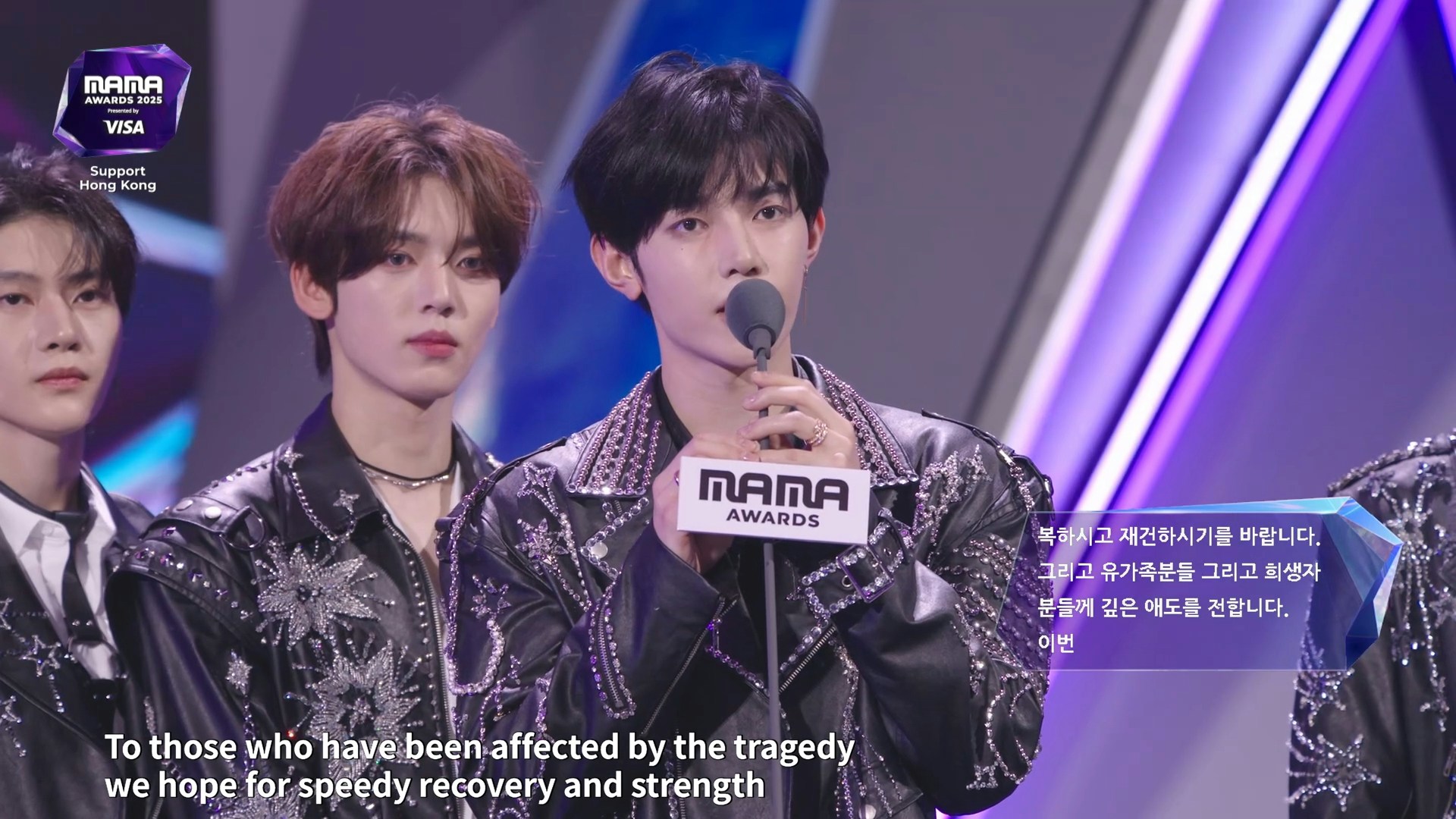 男團ZEROBASEONE獲頒「WORLDWIDE KCONERS' CHOICE」,當中成韓彬及章昊分別用韓文同中文,對大埔宏福苑火災遇難者表達哀悼之情,中國籍成員章昊表示:「首先為這次在災難中受到傷害的同胞們,希望大家能夠快點恢復健康,然後重建家園,也再次為所有的遇難者,還有遇難者家屬們哀悼,特別是我們ZEROBASEONE也一直在為能在全世界範圍內給大眾們帶來積極影響,一直在努力着,所以很榮幸能獲得這一次WORLDWIDE KCONERS' CHOICE的獎,我們也會繼續努力給大家帶來更好更積極的作品,希望大家可以一直支持我們,謝謝大家。」最後他更用廣東話講道:「再次希望大家可以平平安安,多謝大家!」