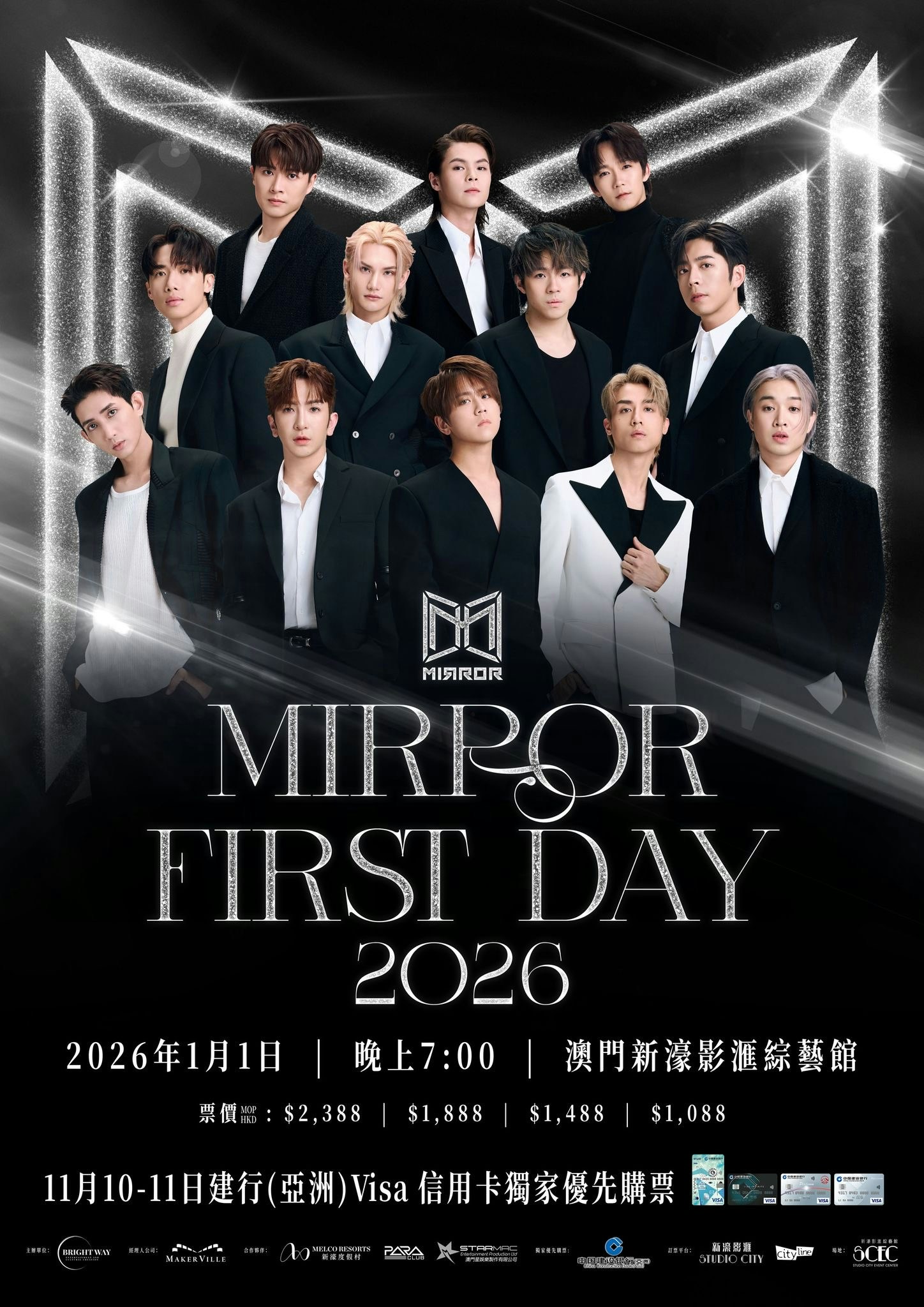 踏入元旦,再掀新一波鏡式風暴!MIRROR將1月1日這個重要日子,奉獻予《MIRROR First Day 2026》演唱會,作為揭開2026年序幕的重磅專場演出,十二子將帶來全新舞台體驗,傾力跳唱最多首耳熟能詳的經典金曲,為粉絲精心打造一個獨特而不可復刻的元旦日。澳門新濠影滙綜藝館勢將完全被MIRROR粉絲的熱情籠罩,興奮爆錶!