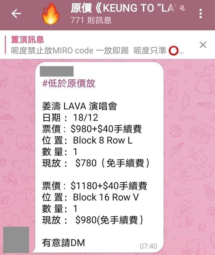 近日網上有傳,姜濤演唱會有炒燶飛的情況。有網民在網上討論區以「神話破滅,姜濤一街濃飛無人吼」作標題,內文貼出疑似通訊群組中的截圖,表示有多套連位以低於售價放售,疑似是黃牛黨炒燶飛急求放售止蝕。當中分別有原價$1,180以$1,100出售,也有$800全包宴,亦有原價$1,180以$980出售及$980減$200出售的情況。