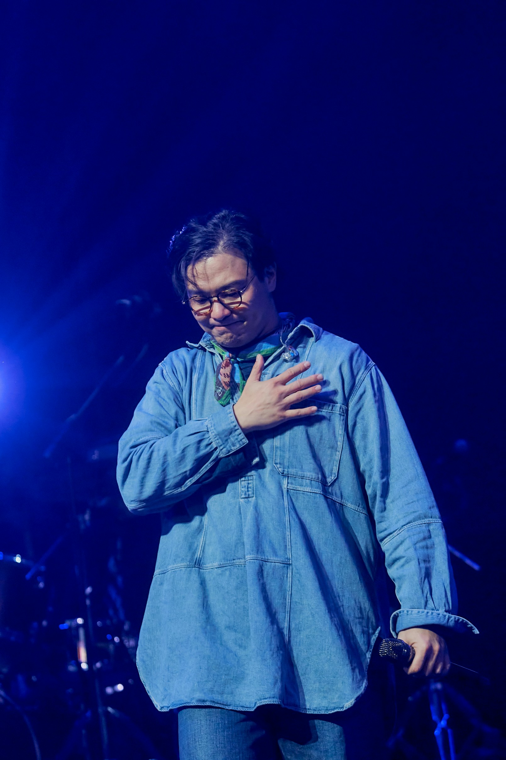 6號連唱〈想寫好的功課〉及〈未來見〉時,都忍不住留下男兒淚,淚流滿面的他邊喊邊唱,聽得出歌聲都在顫抖著。(大會提供)
