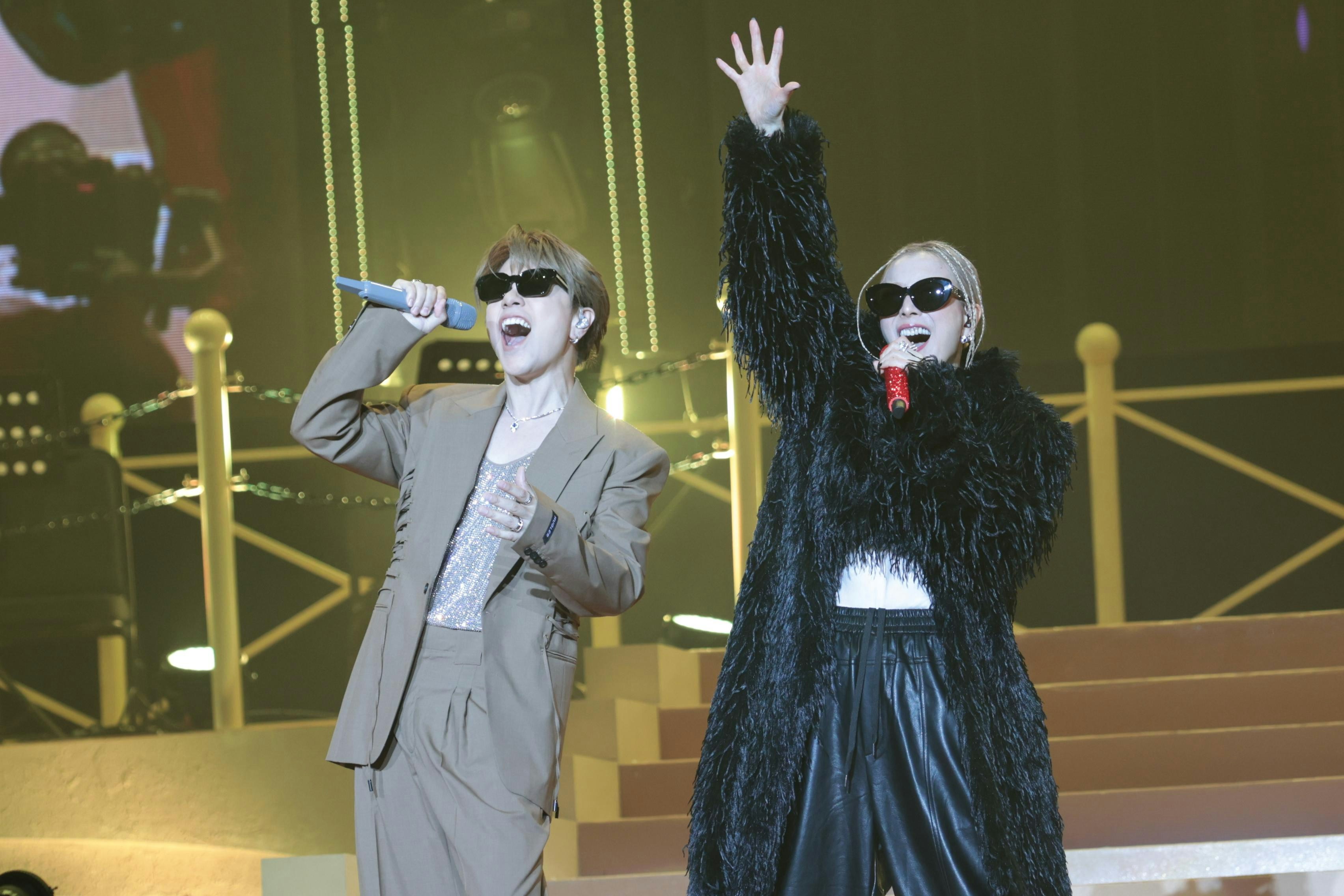 演唱會高潮迭起,兩人合唱林憶蓮經典《芝加哥的故事》時,Sammi換上一身黑絲配超短皮褲的火辣戰衣,與軒仔上演「面貼面」的辣身舞,引爆全場尖叫。(陳順禎攝)