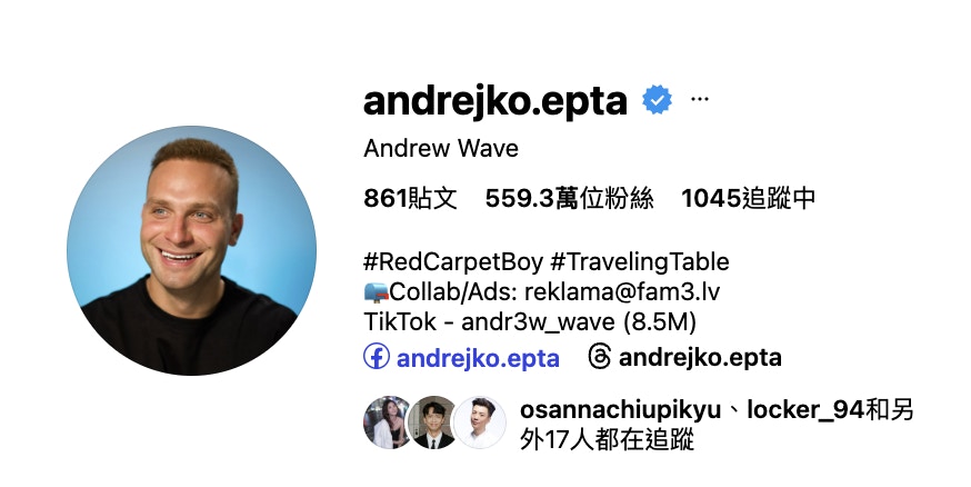 Andrew Wave全球坐擁逾500萬粉絲。(IG@andrejko.epta)
