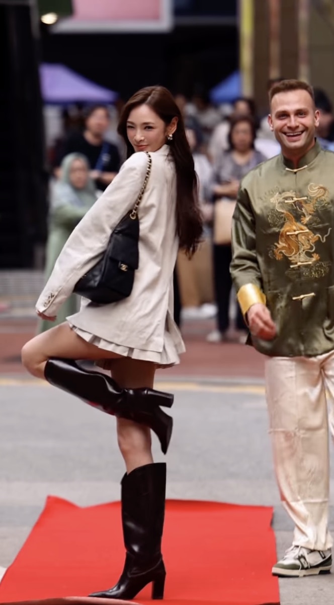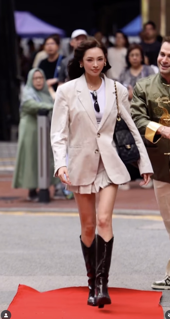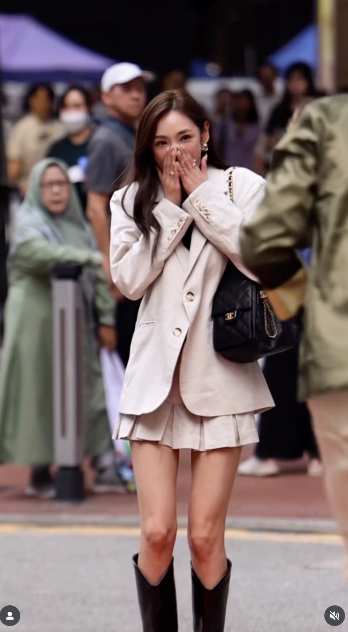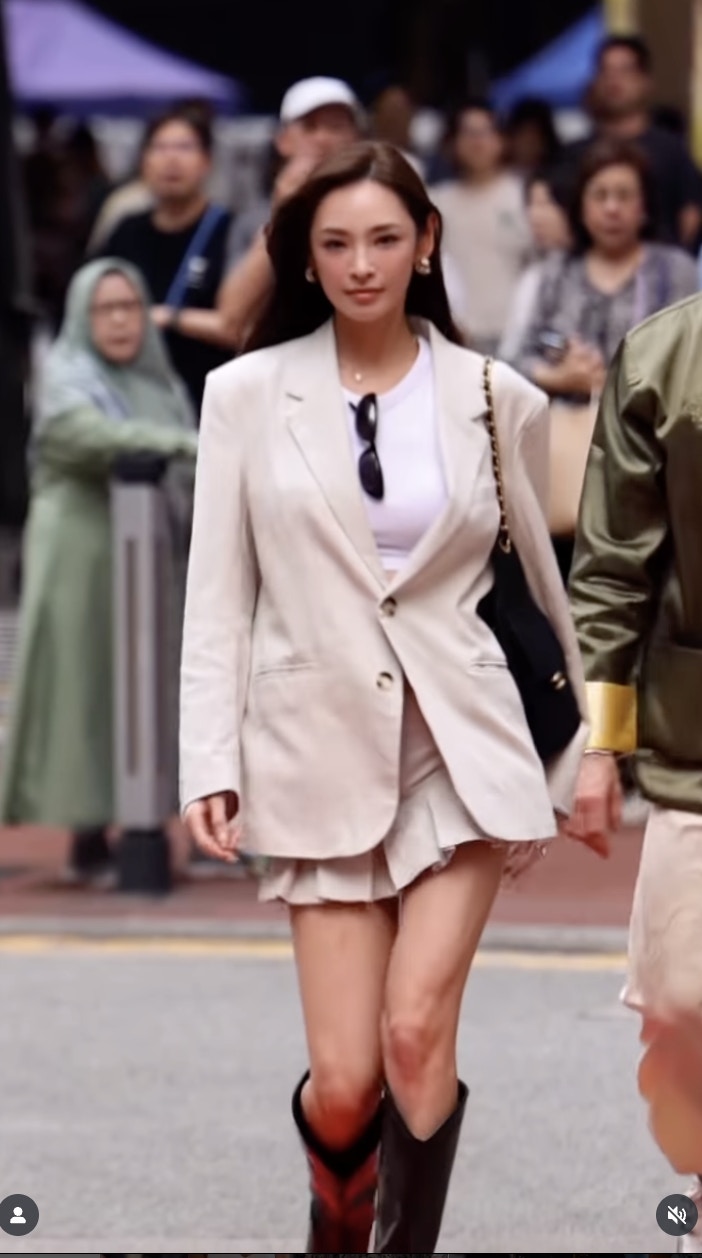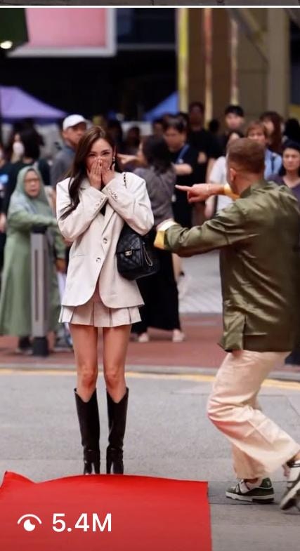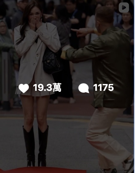 陳楨怡(網上圖片) Andrew Wave在Instagram以在街頭突然鋪紅地氈,讓名人和藝人在公眾地方行Catwalk而聞名,在TikTok亦擁有大批粉絲。近日Andrew Wave來港,邀請了多位藝人網紅在香港街頭行紅地氈,陳楨怡便是其一位幸運兒。陳楨怡穿上白色西裝外套和短裙,青春洋溢。米七的她又高又靚,自信地行完紅地氈後騷美腿,該片勁收500萬觀看次數,又收獲19.3萬讚好,過千留言,至今成Andrew Wave此次訪港次之行唯一TVB藝人獲邀拍過該片。
