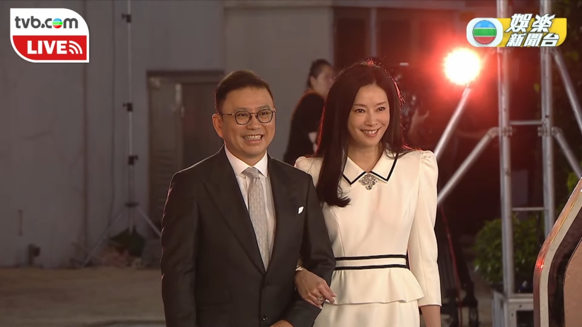 許濤拖住太太陳祉妤行紅地氈。(影片截圖)