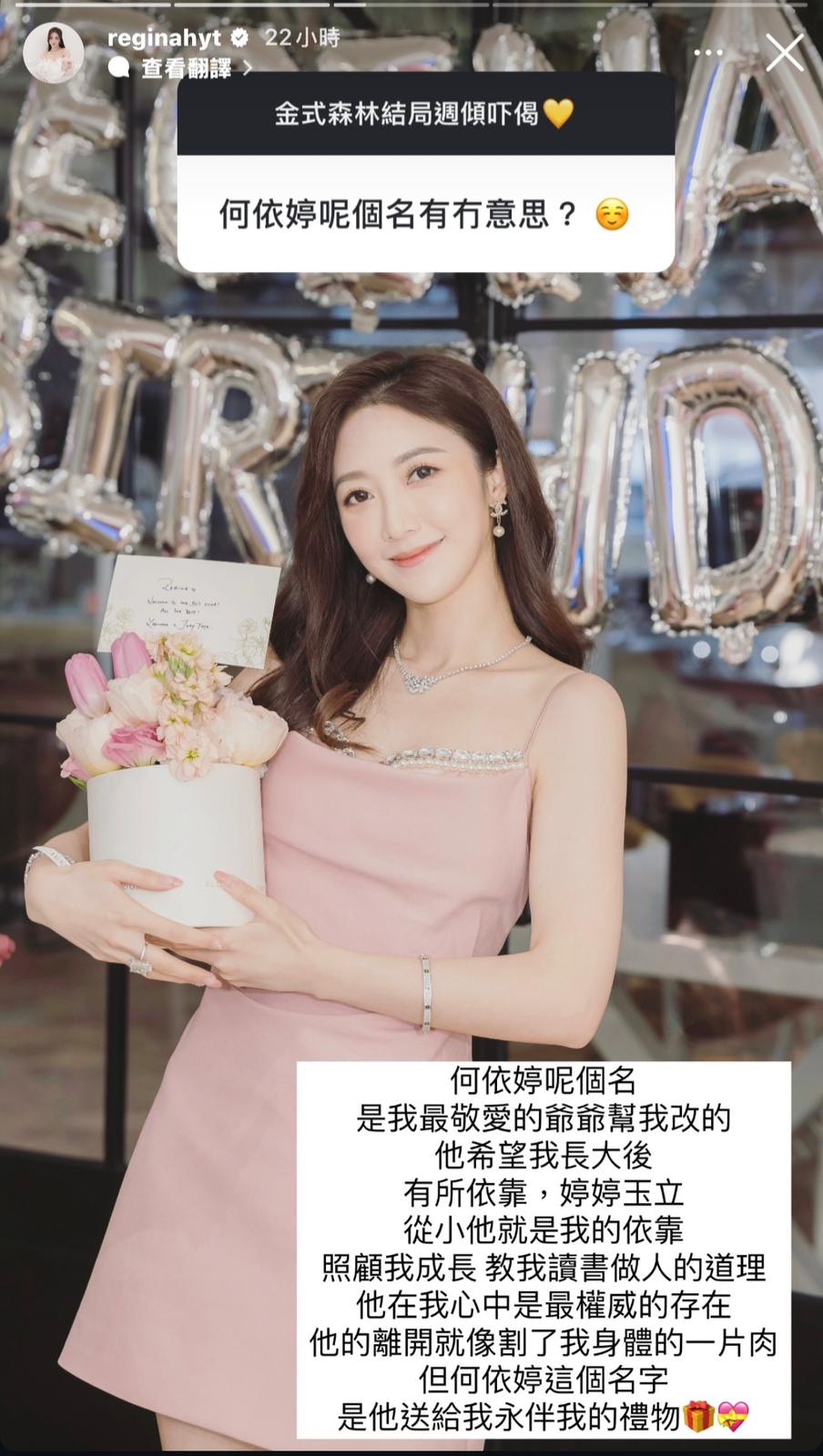 何依婷揭名字背後故事有洋蔥。(IG@reginahyt)