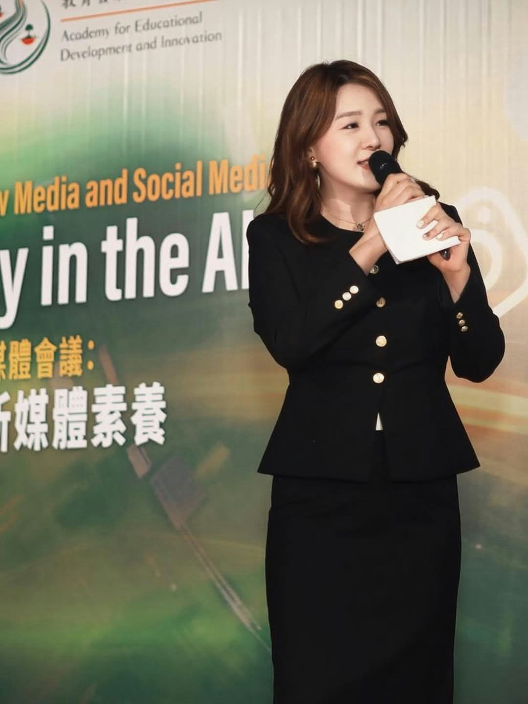 孫雪祺近日在Instagram發文慶祝自己完成雙語主持任務,她說:「第一次參與籌備和主持國際學術會議,感謝世界各地的頂尖Professors,各大傳媒機構負責人,以及我的百萬博主好朋友吉如和Sisi(大量合照還沒收到)收穫頗豐,繼續努力」。孫雪祺自謙稱為「傳媒學術界小薯」,但沒有一定實力,絕不會受賞識擔以重任。孫雪祺一身黑色正裝,又Fit又專業,她在台上揸咪主持,大方得體,在學術界又升一級!