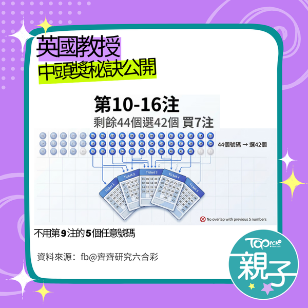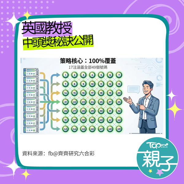 相比中六保五聰明組合,更引發網民熱議的是來自英國巴拉福特大學教職員的「17注神組合」。這套方案堪稱「超低成本終極方案」——僅用17注、$170的成本,買齊全部49個號碼,堪稱「食全餐」的奇蹟。