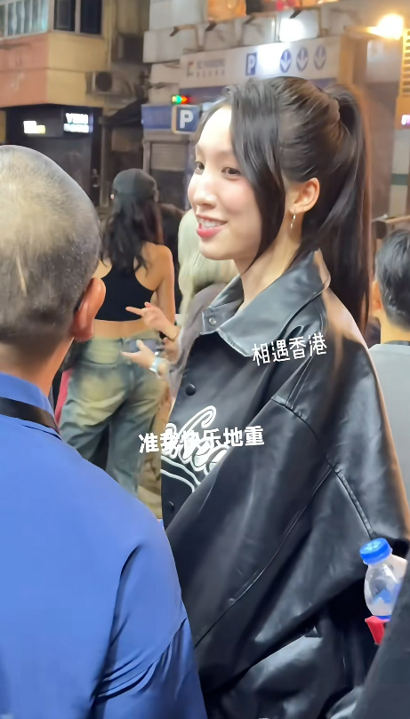 從網民上傳的照片可見,當日海兒束起長髮,身穿黑色皮外套,配搭灰色百褶短裙,整體造型洋溢青春少女氣息。當時她正與身旁路人親切交談,臉上展露甜美笑容,態度自然大方。