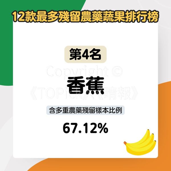 報告指出,在被檢驗的17種水果與蔬菜中,共發現123種不同化學物質;75%水果樣本及25%蔬菜樣本含多重農藥殘留。當中發現42種與癌症相關的農藥,以及21種會干擾荷爾蒙的化學物。報告又指,若民眾長期接觸可能增加患癌風險,亦可能引致先天缺陷、發育障礙及生殖問題。