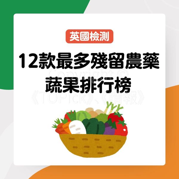 蔬果/農藥/癌症/不育|農藥無色無味,即使已仔細清洗,但仍然難以分辨是否乾淨。英國非牟利組織日前公布的最新報告指出,當地超市最常見的水果蔬菜中,有12種已成為農藥殘留最嚴重的「最毒蔬果」。其中農藥殘留最嚴重的水果樣本,更被驗出含高達99%多重農藥殘留,長期進食可能導致癌症或不育,情況令人堪憂。