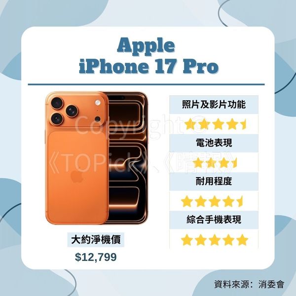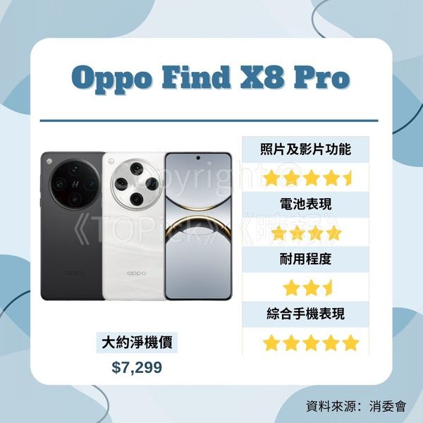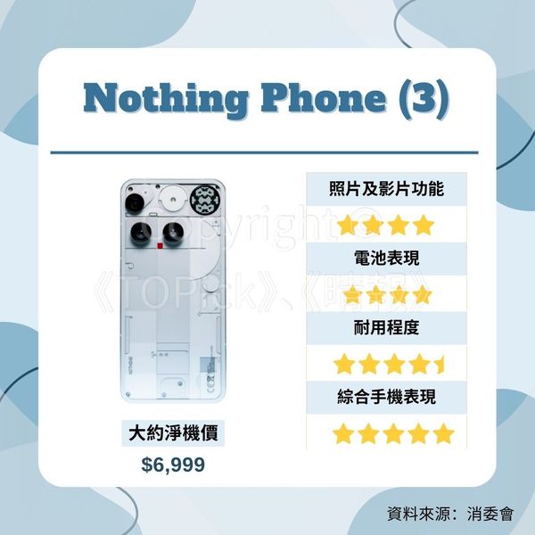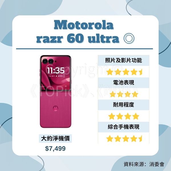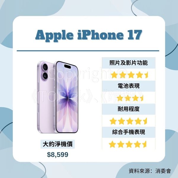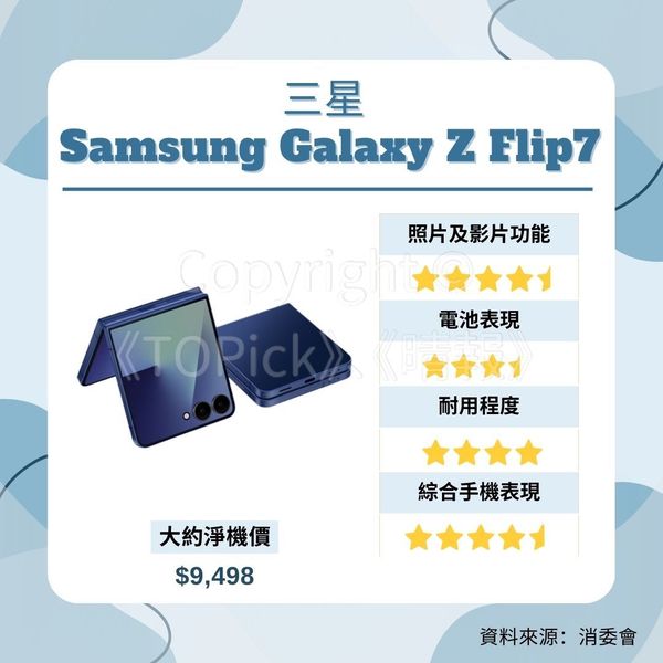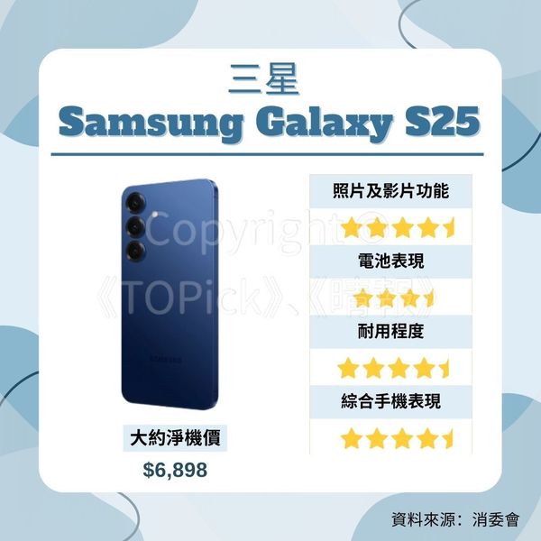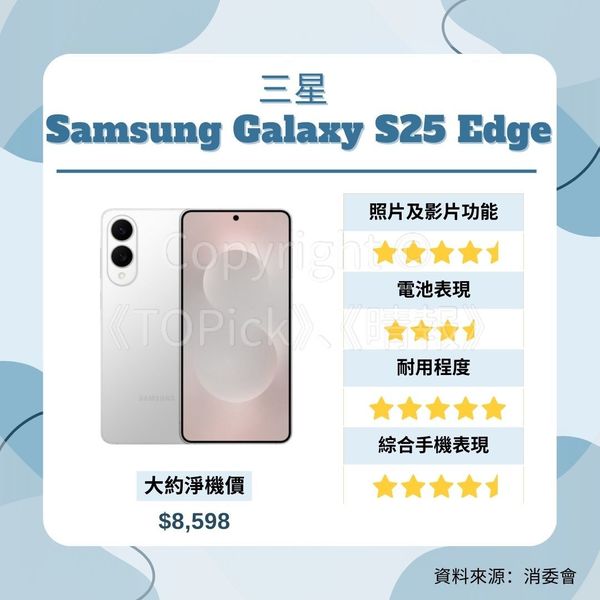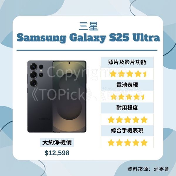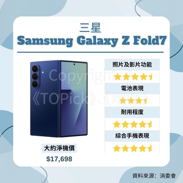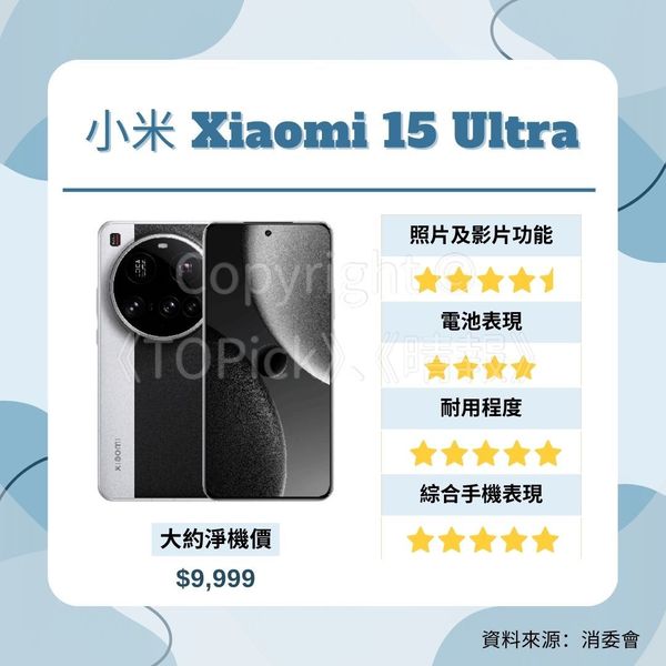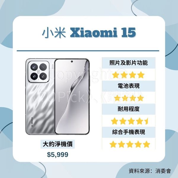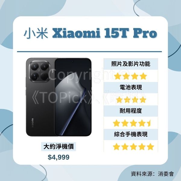 是次測試對該41款產品的拍攝照片及影片功能、電池表現、耐用程度及綜合手機表現等進行測試。測試結果顯示,有23款產品獲得評分4.5星高分,其中大約售價為$4,999的「小米 Xiaomi 15T Pro」更媲美$17,698的「三星 Samsung Galaxy Z Fold7」。