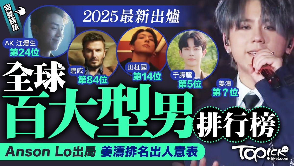 全球百大型男2025︱美國知名網站TC Candler最新公布2025年「全球百大型男」排行榜,引發全球粉絲熱議。其中,香港男團MIRROR成員江𤒹生(Anson Kong / AK)排名第24位;去年排名第91位的盧瀚霆(Anson Lo)今年遺憾跌出百大,未能與隊友一同上榜。至於姜濤去年曾奪得亞軍,成為「亞洲第一帥」,今年排名則令人相當意外!
