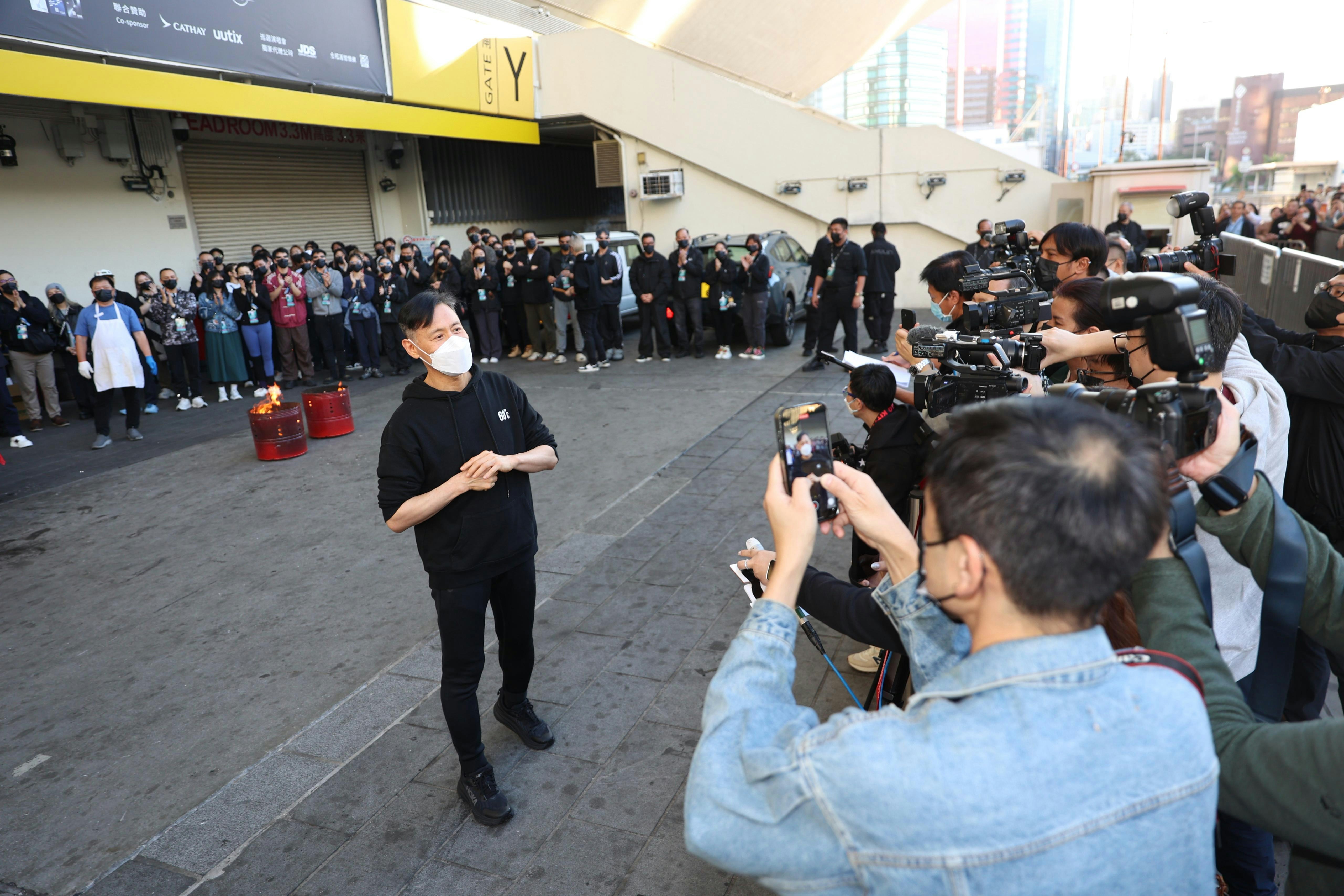 有記者問他會否有嘉賓,他則風趣回應:「有冇睇呀你?你有睇,你就係我嘉賓」(陳順禎攝)