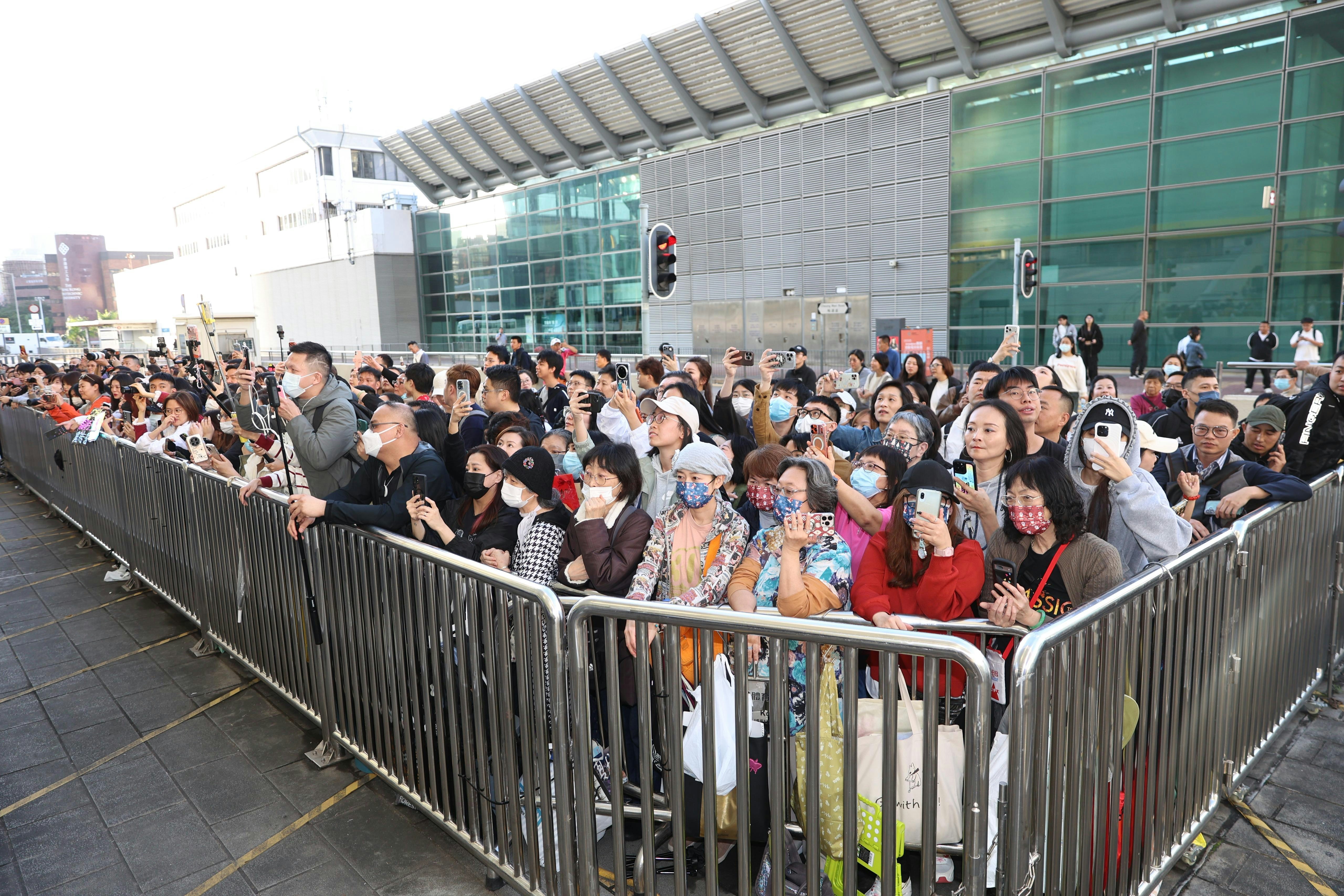 大批歌迷守候學友。(陳順禎攝)