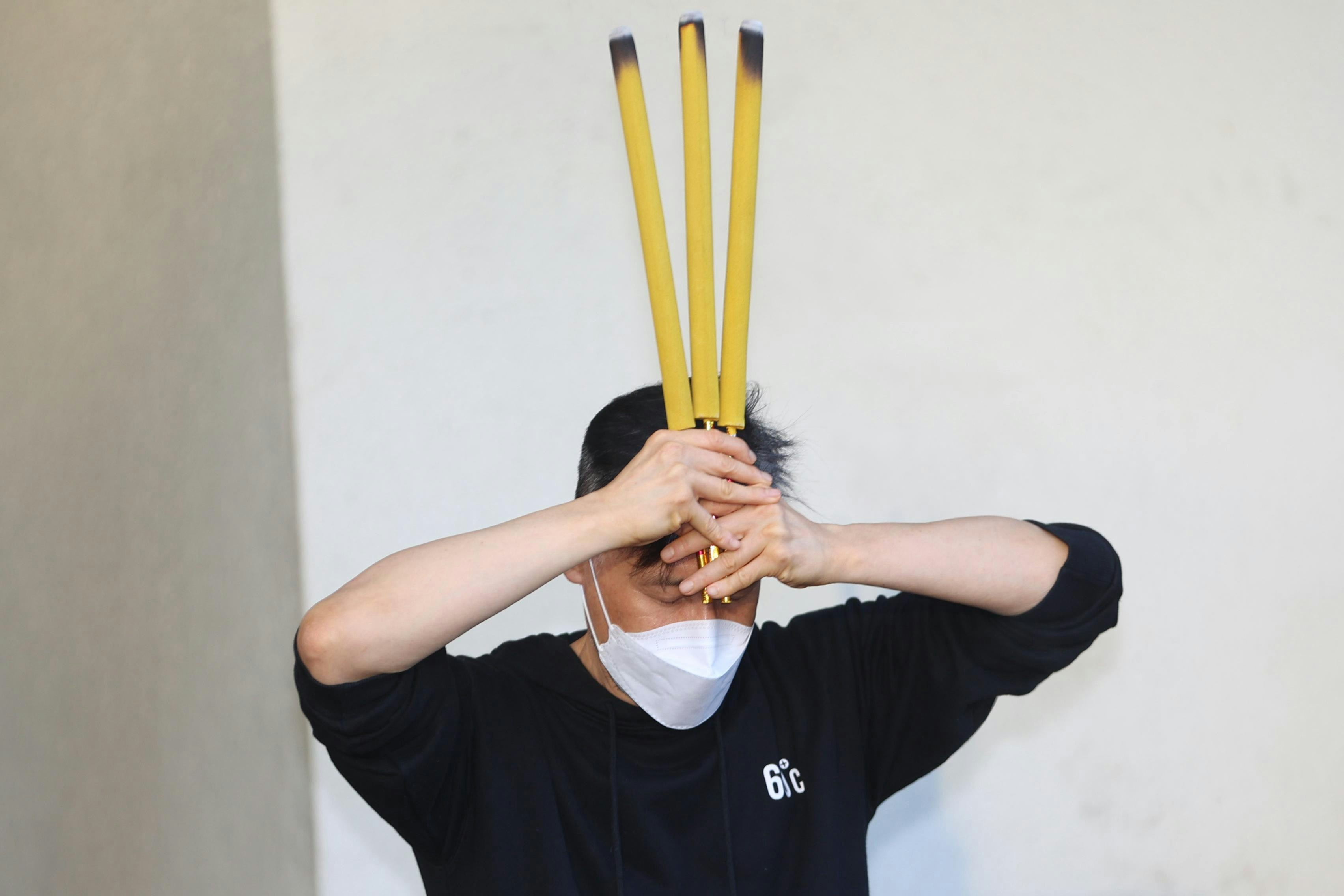 張學友誠心拜神,希望演唱會能順利、完整地完成。(陳順禎攝)