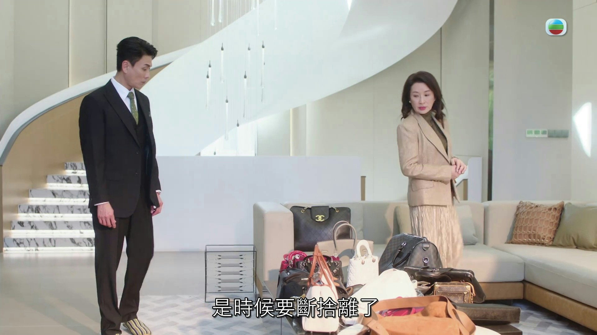有眼利網民發現「梁景仁包包」,是一眾手袋之中最廉價的,並笑言:「佐治是方太眼中最冇價值嘅棋子」。(《新聞女王2》劇集截圖)