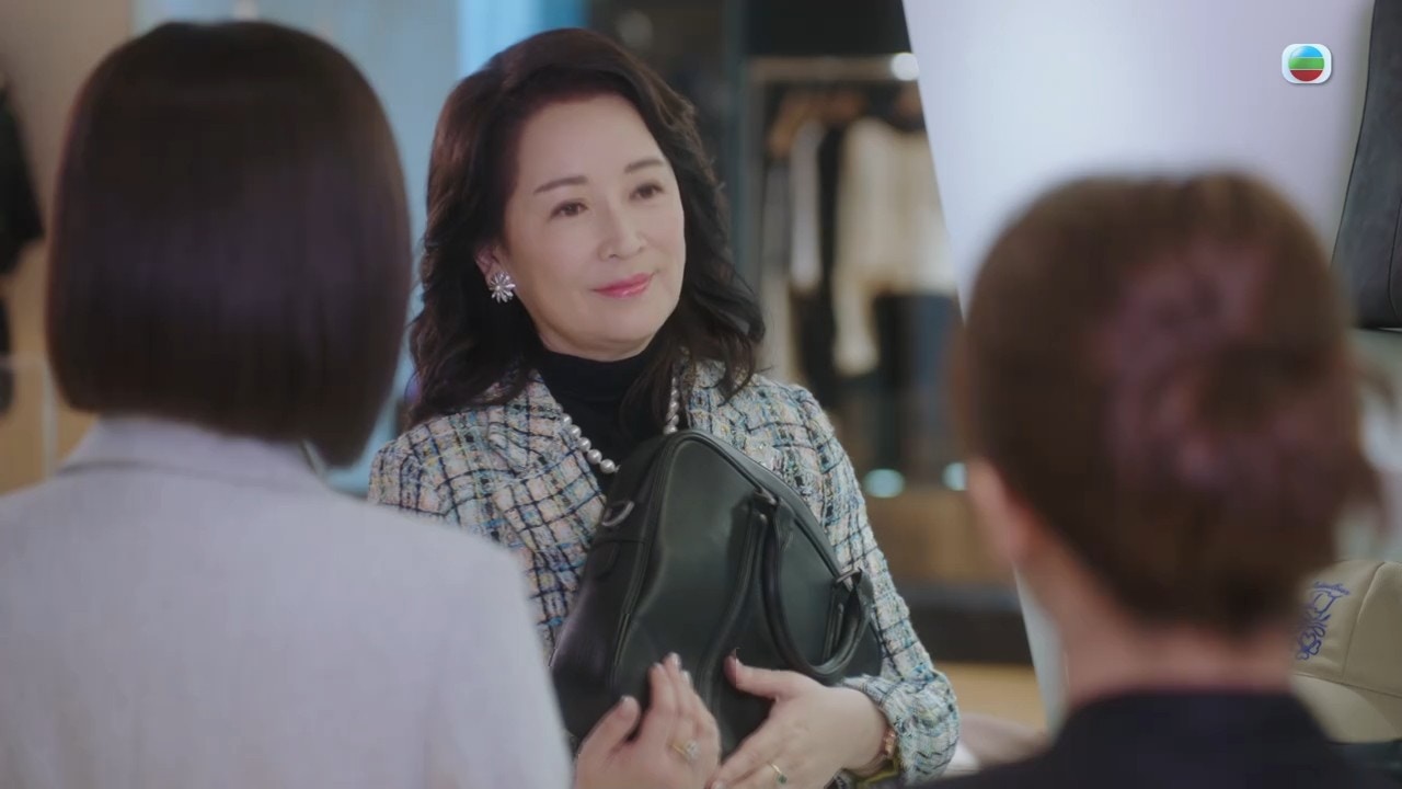 回顧方太上一季,係帶住Man姐去睇手袋,仲勸Man姐要放闊心胸接受同公司勁敵。(《新聞女王》劇集截圖)