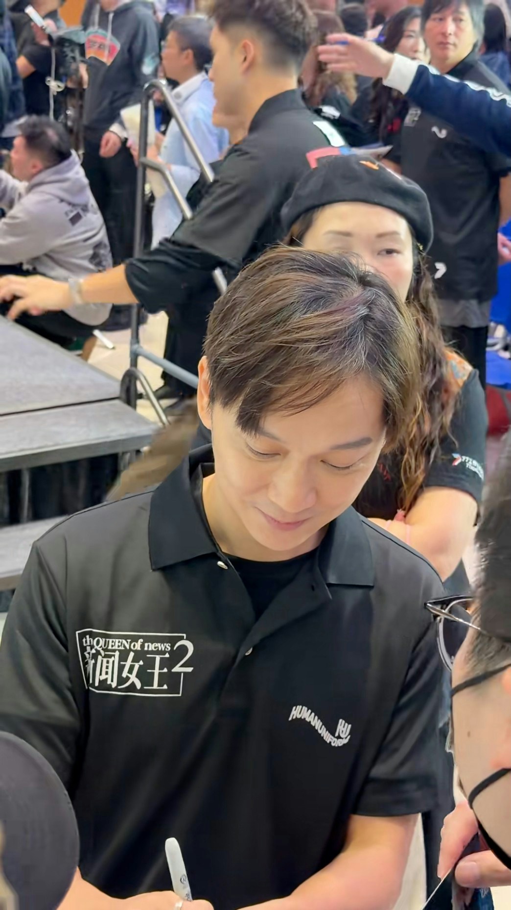 日前有網民將早前偶遇鄧智堅出席《新聞女王2》宣傳活動的片段分享到小紅書,並留言寫道:「飛爺在戲裡跟現實中是不是反差很大?」片中鄧智堅穿上新聞女王的黑色T恤,臉上亦沒有劇中的鬍鬚及灰髮,看起來非常年輕。