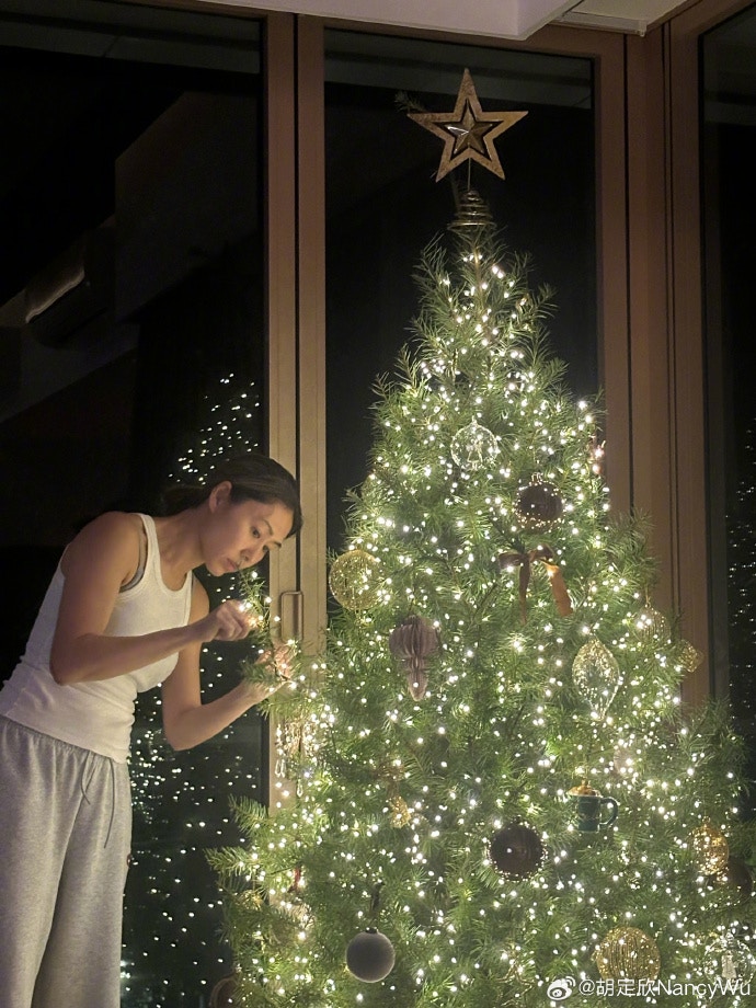 胡定欣自從由「黃金剩女」變身「醫生太太」後,整個人散發出陣陣知性美。她日前在微博分享於豪宅佈置聖誕樹的照片,胡定欣親自落手落腳為聖誕樹掛上裝飾,而該棵聖誕樹份量驚人,見逾兩米高的巨型聖誕樹幾乎觸及天花板,放在闊落的客廳中依然顯得游刃有餘,而客廳色調簡約大氣,配合暖色系燈光,節日氣氛濃厚。而胡杏兒夫婦送龍鳳鈪給她時,她曾稱當日在她家中打邊爐,低調盡顯奢華生活。