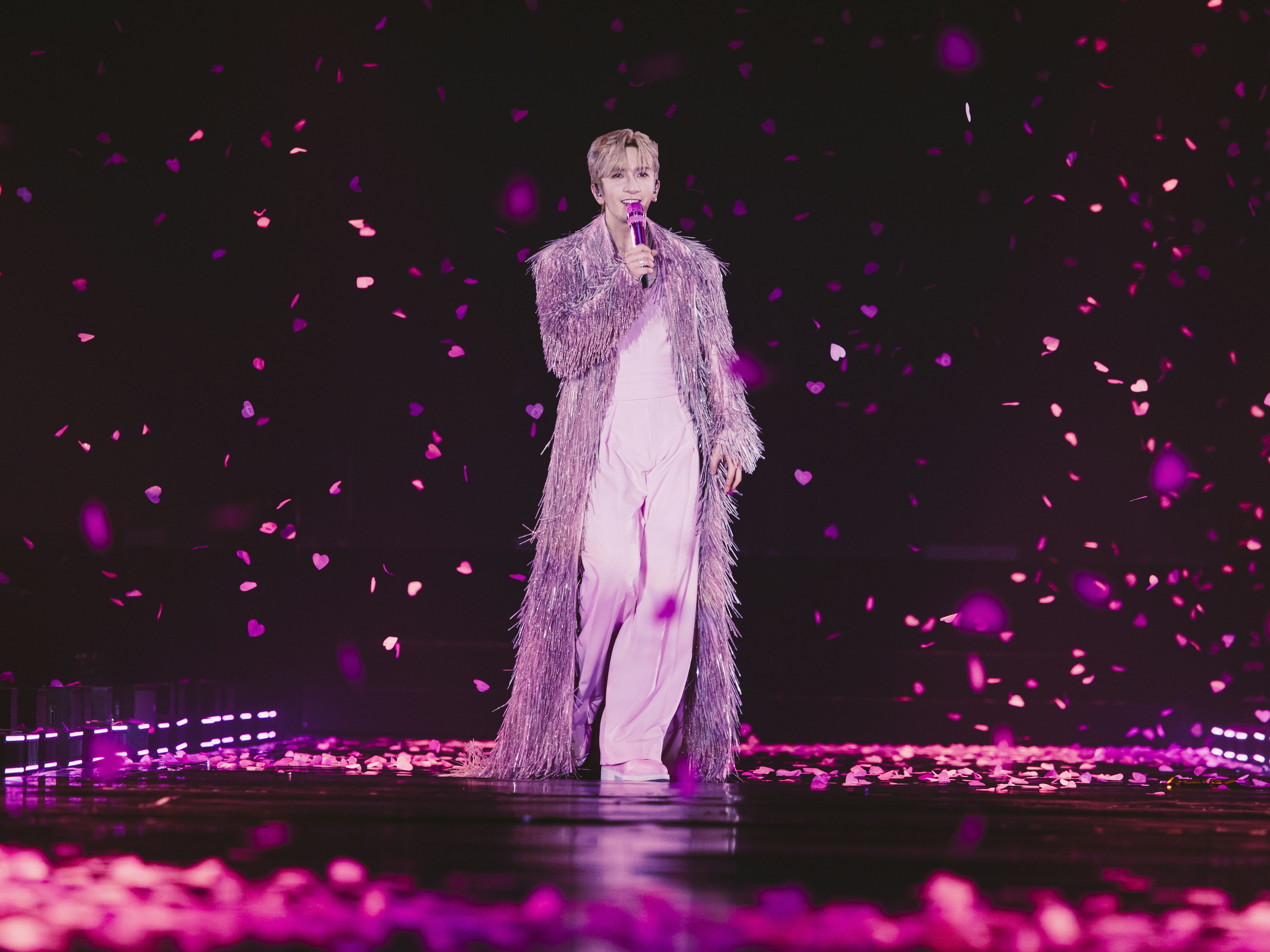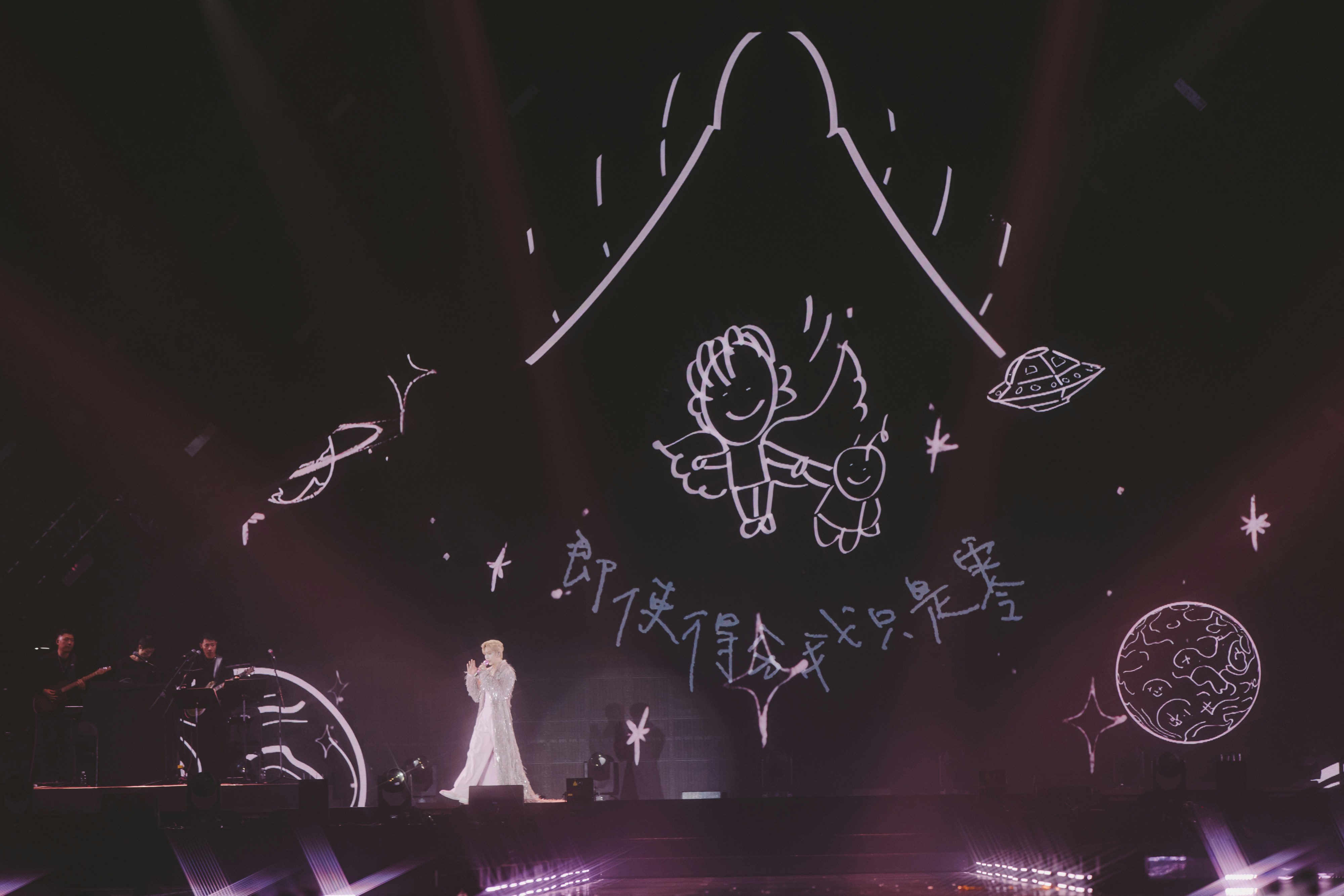 舞台上的Anson Lo霸氣十足,舞台下的他則是心思細膩的「暖心教主」。在特別感謝「神徒」(粉絲暱稱)的環節中,現場噴射出的每一顆粉色心心,都藏有他親手繪製的卡通公仔圖案。其中包括頭戴皇冠、契合本次演唱會主題的Anson Lo Q版造型,每一筆劃都蘊含著對粉絲們滿滿的愛與感謝,誠意十足,將現場溫馨氣氛推向高潮。