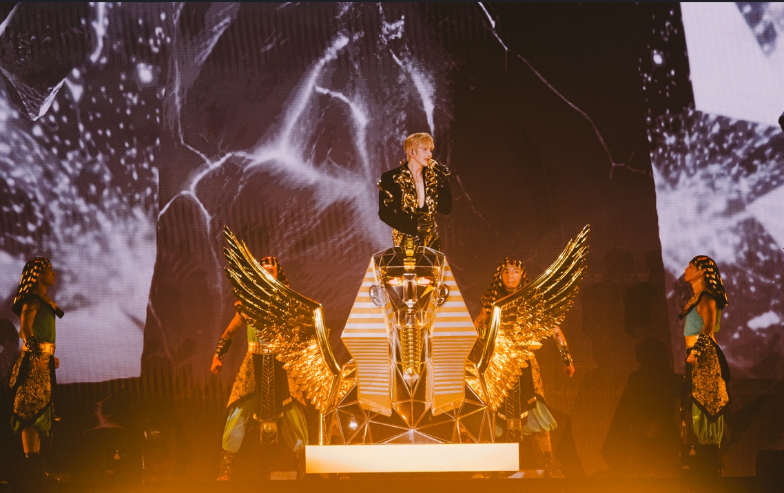 盧瀚霆(Anson Lo)一連五場的《ANSON LO "KINGDOM" LIVE 2025》(”《KINGDOM》”)演唱會,已於前晚(6日)在亞洲國際博覽館完成第二場演出,現場氣氛熾熱。演唱會以「埃及國度」為核心主題,主舞台採用宏偉的金字塔結構,中央更懸掛著巨型倒轉金字塔,搭配四面巨型螢幕,營造出震撼而神秘的異域國度氛圍。