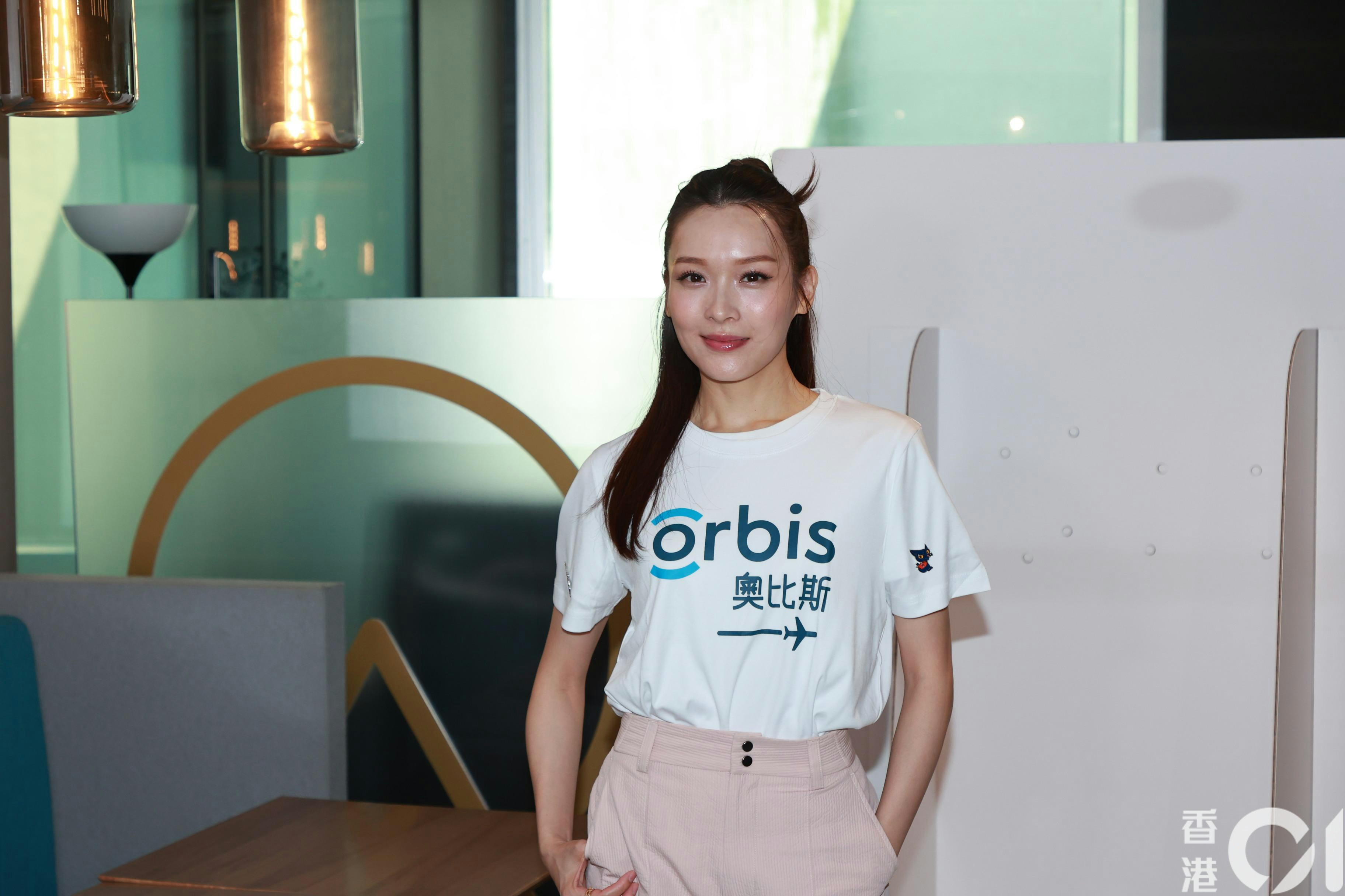 李佳芯以「愛眼之星」身分,到尖沙咀出席「奧比斯世界視覺日」活動,呼籲大家守護視力。(葉志明攝)