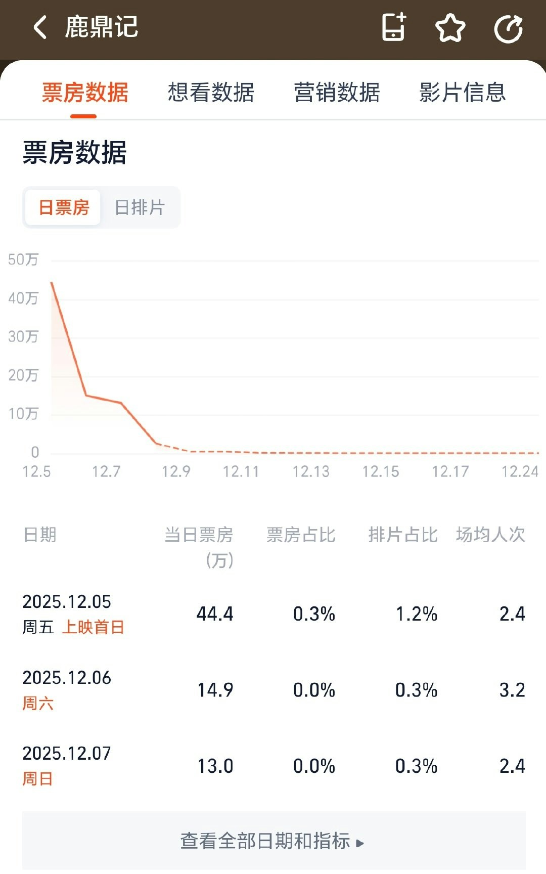 數據指出,橫向對比《優獸大都會2》同期拿下23億票房,71%的排片形成壟斷,而《鹿鼎記》票房佔比僅0.2%。