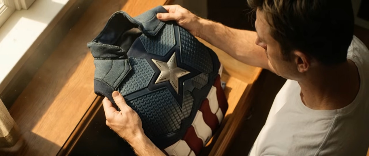 Steve Rogers將盾牌交予飛隼接任新美國隊長,標誌基斯伊雲斯從美國隊長角色畢業。(《復仇者聯盟4:終局之戰》劇照) 據網上流傳之片段及圖片,基斯伊雲斯飾演的Steve Rogers駕駛電單車返回《復仇者聯盟4》與卡特探員跳舞的居所之中,在《復仇者聯盟》主題曲下拉開櫃桶取出美國隊長制服緬懷過去,更驚人地抱起剛出生的兒子、展露慈父微笑!預告片最後轉入全黑畫面,並一貫以字幕顯示「Steve Rogers will return in Avengers:Doomsday」,然而有別以往Mavrel電影以超級英雄稱號預示角色回歸,預告卻以Steve Rogers作為稱呼,估計Steve Rogers未必會重披美國隊長戰袍,或會以另類身份登場。