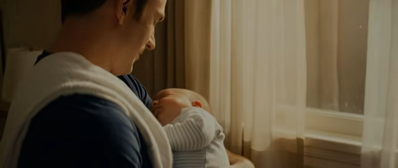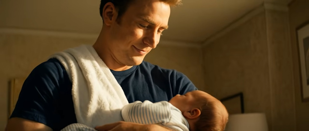 Steve Rogers更驚人地抱起剛出生的兒子、展露慈父微笑!(網上影片截圖)