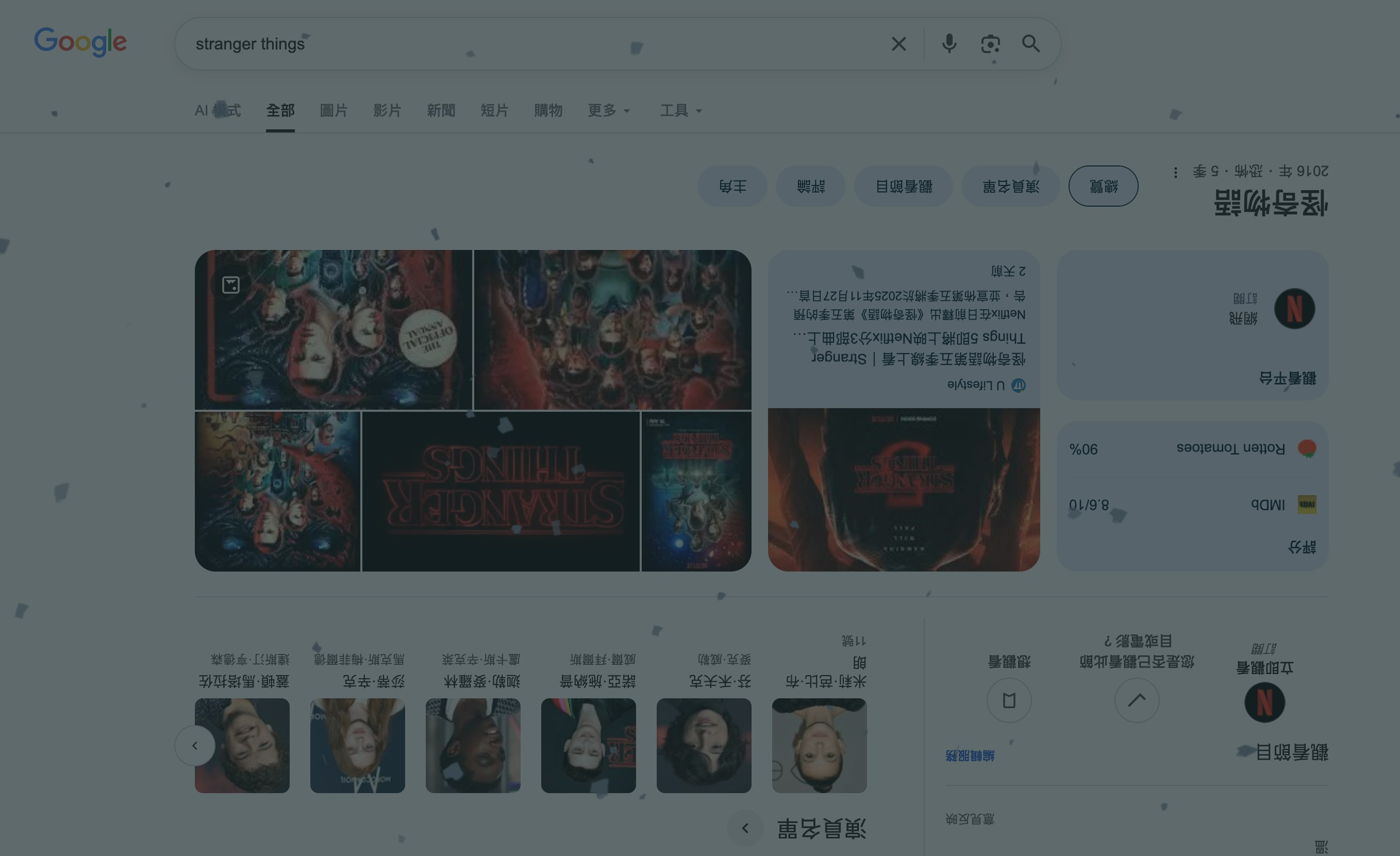 在Google Search搜尋欄中輸入「Stranger Things」,會出現骰子。(Google版面截圖)