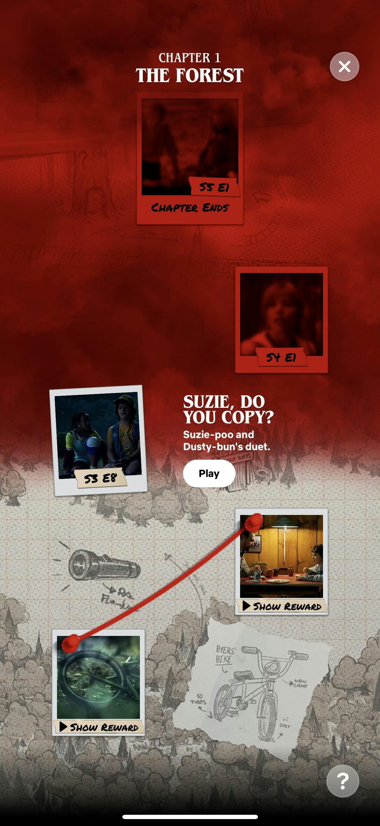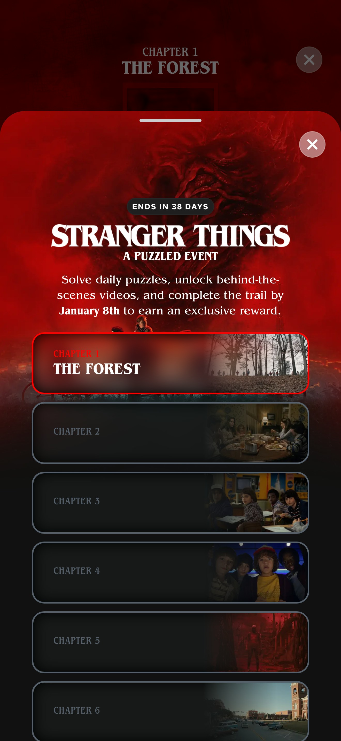 Netflix App內的Netfilx Puzzled小遊戲,出現「Stranger Things」主題限時登場,並分成多個章節,有砌圖、文字等解謎題目,只要有看過劇集的話都應該能解答到,而成功解謎,獎品就是劇集花絮短片。