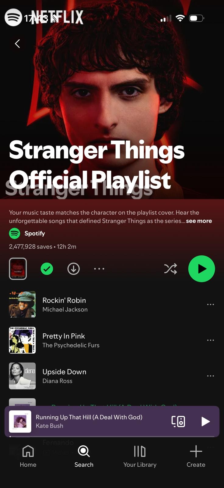 歌單「Stranger Things Official Playlist」。(Spotify版面截圖)