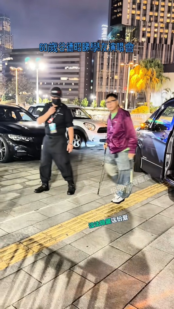 谷德昭的生圖流出再度引起網民熱議,片段可見,谷德昭穿上紫紅色Jacket配拼布牛仔褲,打扮入時,但他甫落車即現老態。頭帶白髮的谷德昭臉容消瘦頗為憔悴,全程手持拐杖,但每行一步都好似好辛苦,要用拐杖借力,頭部看似乏力微微向前傾,神態十足年邁老翁。而女友林子萱則緊隨其後,戴住cap帽以黑白配粉紅色褲,身材無走樣,活力十足。