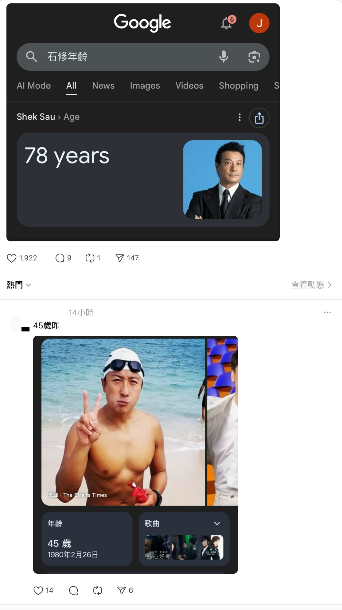 片中修哥身穿黑色T-shirt,手持色士風深情演奏林子祥的《最愛是誰》,指法純熟,一小段已令人聽得陶醉。不過,網民的焦點完全不在其音樂造詣,而是他那不可思議的凍齡狀態,網民甚至特地上網搜尋石修資料,再一次確認自己沒看錯他的確是78歲,片中所見石修身形壯碩、手臂線條結實,最誇張是他擁有一頭濃密烏黑的頭髮,髮量驚人且幾乎零白髮,看來仍相當有型。