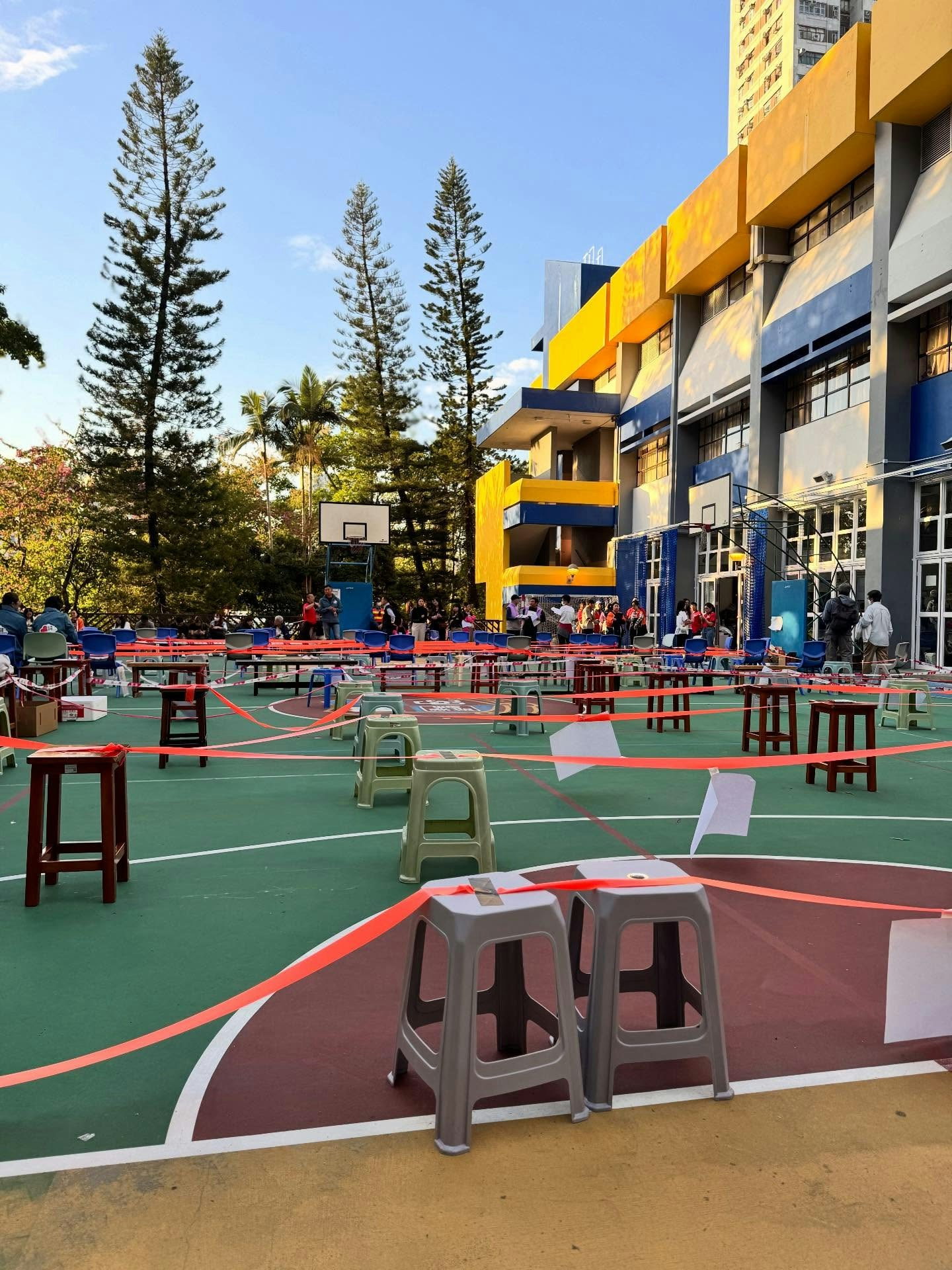 保良局聯同社福界心連心大行動,一連兩天在中華基督教會馮梁結紀念中學的臨時庇護中心設立支援站,為受災市民送上慰問及派發援助金及應急物資。(IG@sandy.lausinting)