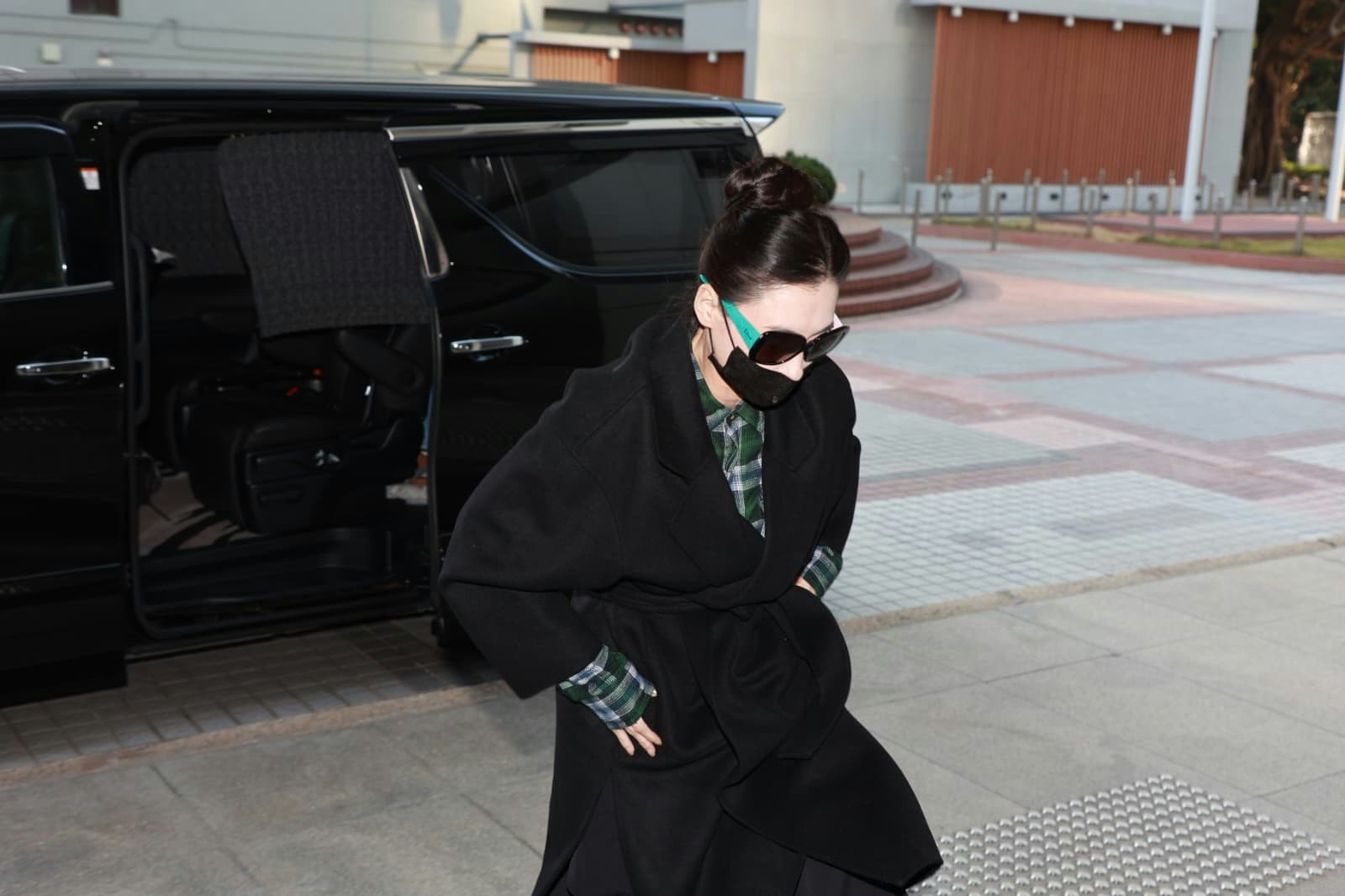 案件今日續審,張柏芝早上約9:05乘坐七人車抵達高等法院,她戴上太陽眼鏡和口罩,一身全黑打扮現身,雙手插袋表現沉默步進高院。