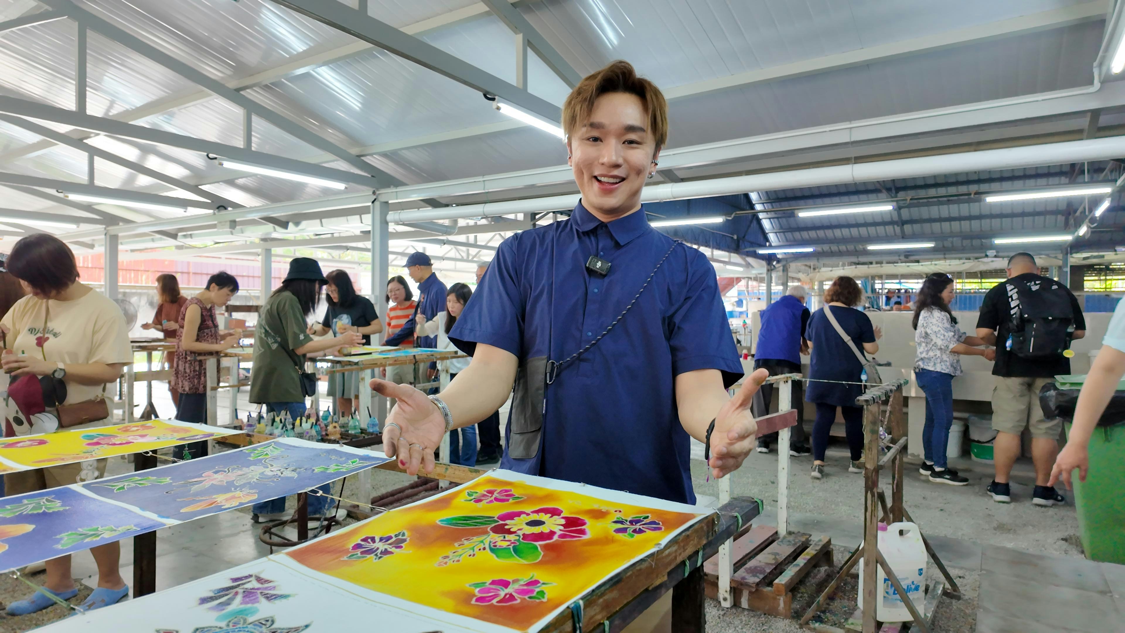 第三天則迎來文化亮點峇迪蠟染手作體驗,在工坊導師帶領下,Rax和團員從繪蠟、上色到定色全程親手參與,切身感受蠟染作為馬來文化與非物質文化遺產的重要價值,每人都完成了獨一無二的作品。